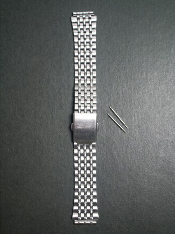 サイズは、実測で、腕時計に付けるラグ幅部分16mm、ベルトの最大幅19.5mm、留め具を留めた状態での全長15.8
