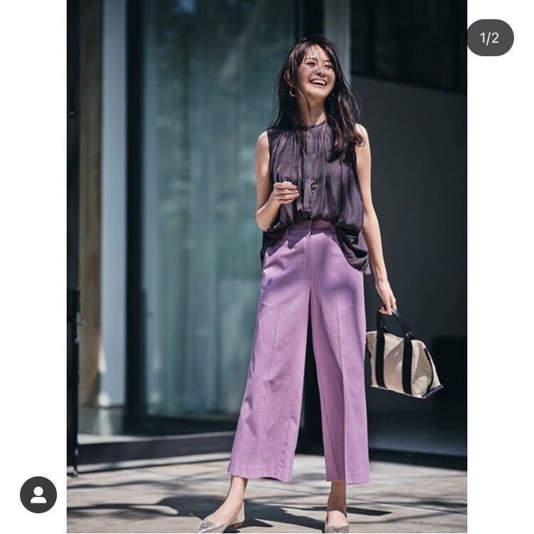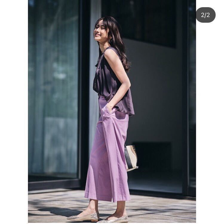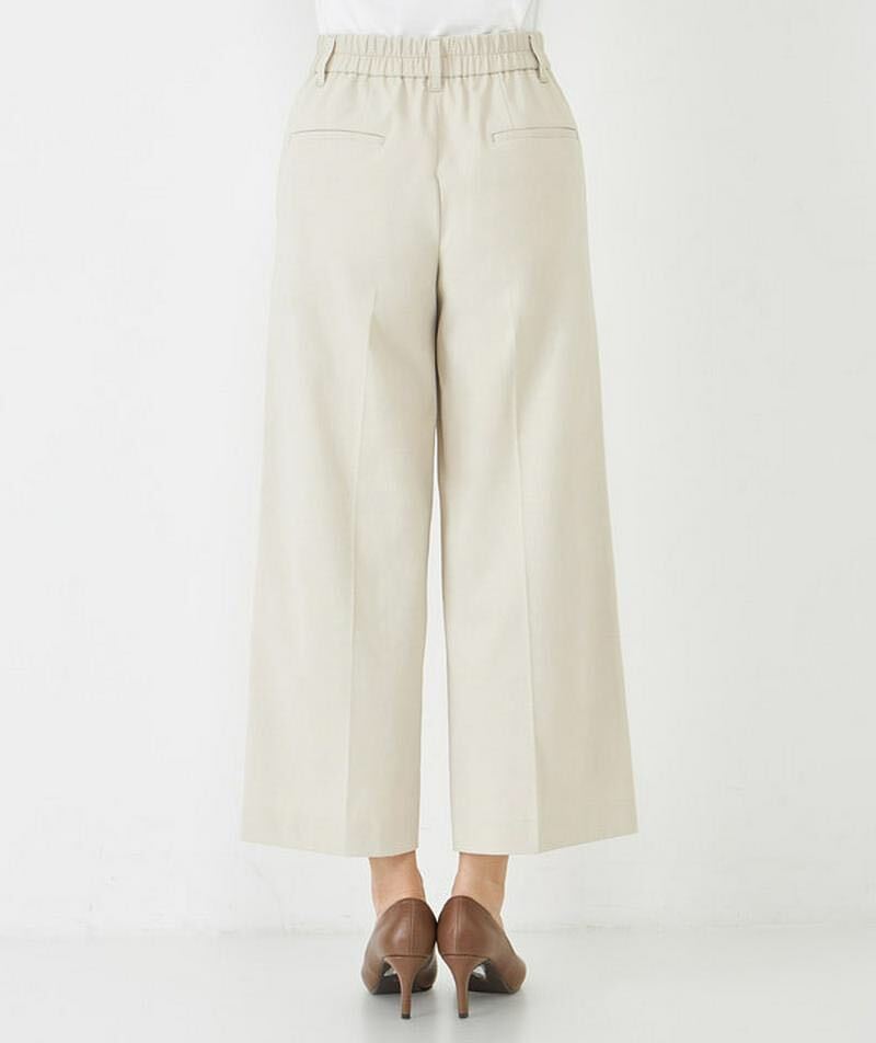リネンのような軽やかな素材が季節に最適なワイドパンツ。