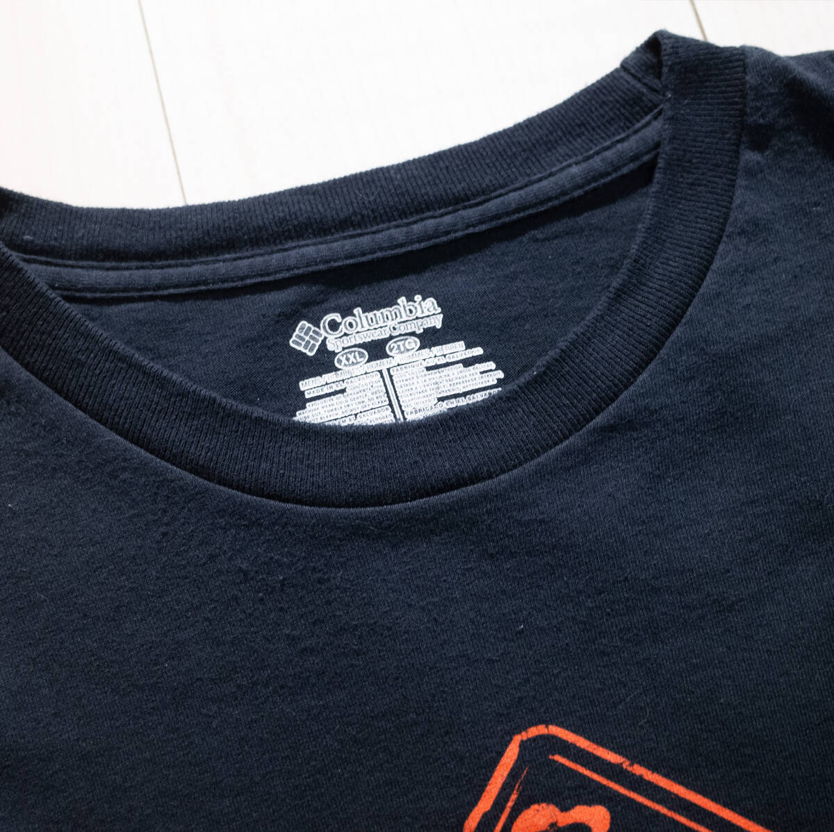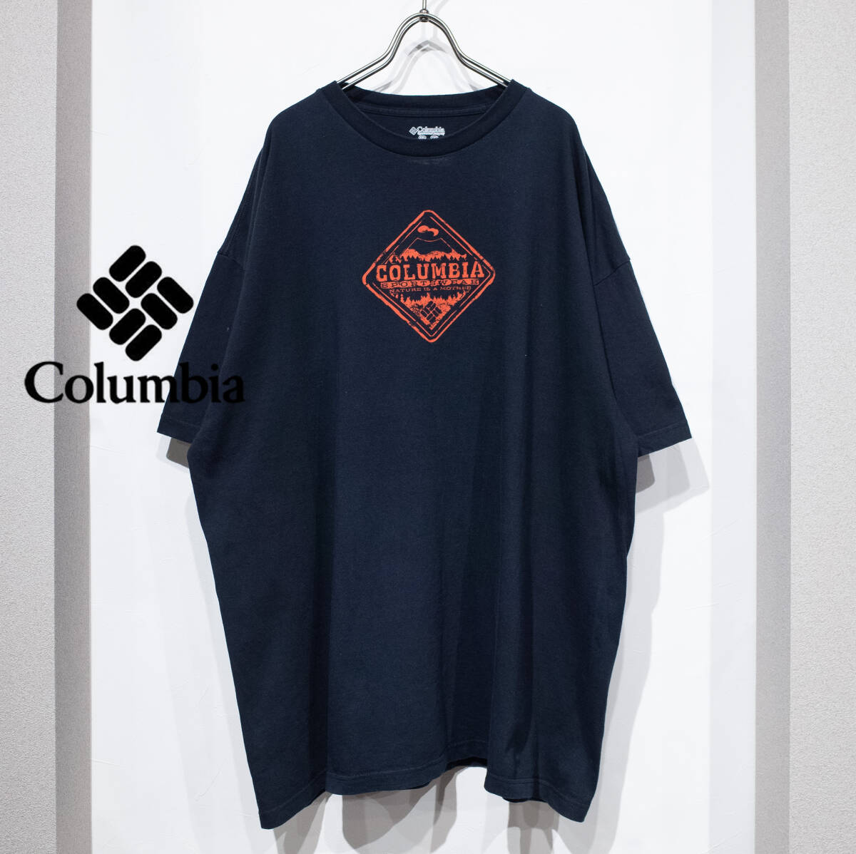 XXL / Columbia コロンビア コットン 半袖 Tシャツ 前面 グラフィック TEE デザイン プリント ダーク ネイビー 濃紺 古着 オーバーサイズ