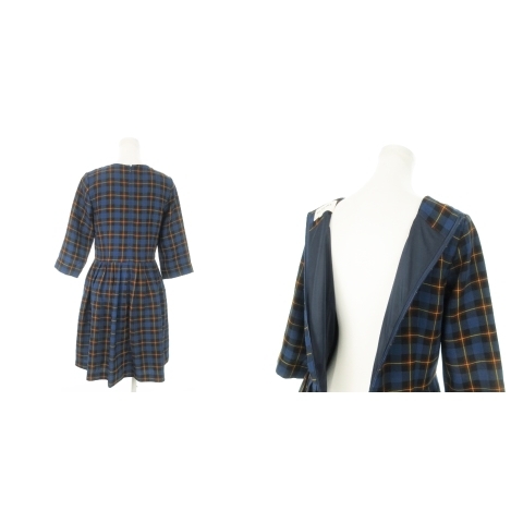 【仕様】素材 やや厚手 開閉 バックファスナー 伸縮性 なし 透け感 なし ポケット なし 裏地 あり 柄 チェック 総柄