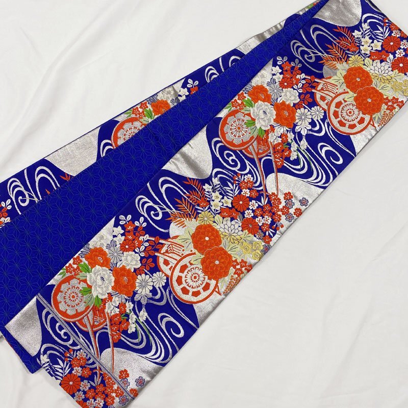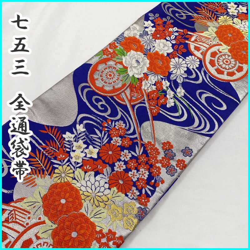 ◎七五三 7歳 全通袋帯 ハーフ成人式 古典柄 花車 唐織◎美品 (No.n) 流水に花車文様に金銀糸が使用されている素敵な全通袋帯です。唐織が施されており立体感がございます。帯芯が入っていないため、比較的軽く柔らかく締めやすいです。七五三にご利用後は、ハーフ成人式、十三参りにもお使いいただけます。 垂れ先から42㎝に糸の飛び出しがございますが、目立つものではございません。他に目立つようなシミ・ダメージはなく美品です。 【素材】正絹 【色】群青色 *モニターによって色味は実際と異なる場合がございます。 【サイズ】幅:26.5cm、長さ:404cm *素人採寸のため、多少の誤差はご容赦ください。 可愛らしいお祝い着用の帯でお勧めです。 |