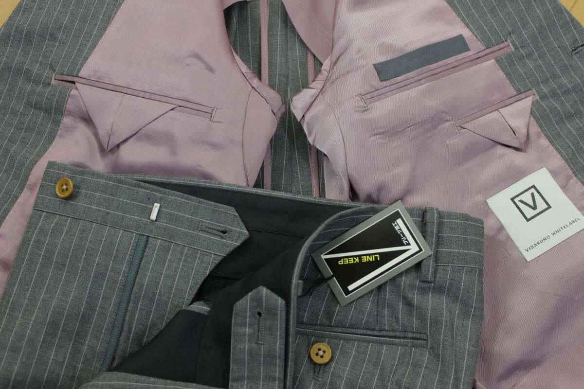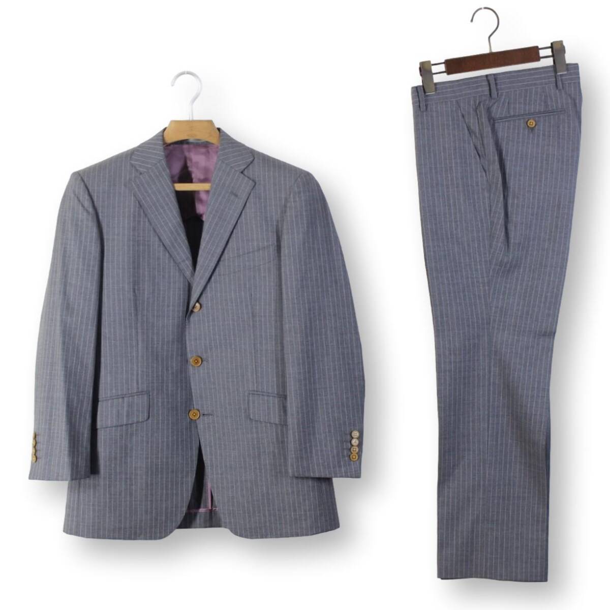 22【新品未使用】ビサルノ スーツ Y6 メンズ スリム体 L グレー ストライプ オーダースーツ プリーツ加工 tqe VISARUNO 丸井 春夏秋
