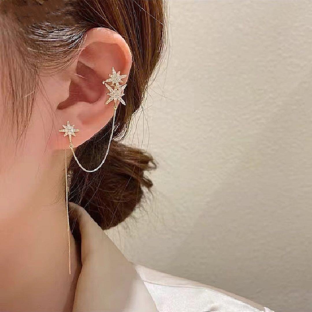新品 可愛い星のイヤーカフ レディースピアス 八芒星のモチーフピアス イヤリング 片耳用 左耳用 シルバー925 ピアス アレルギー対応