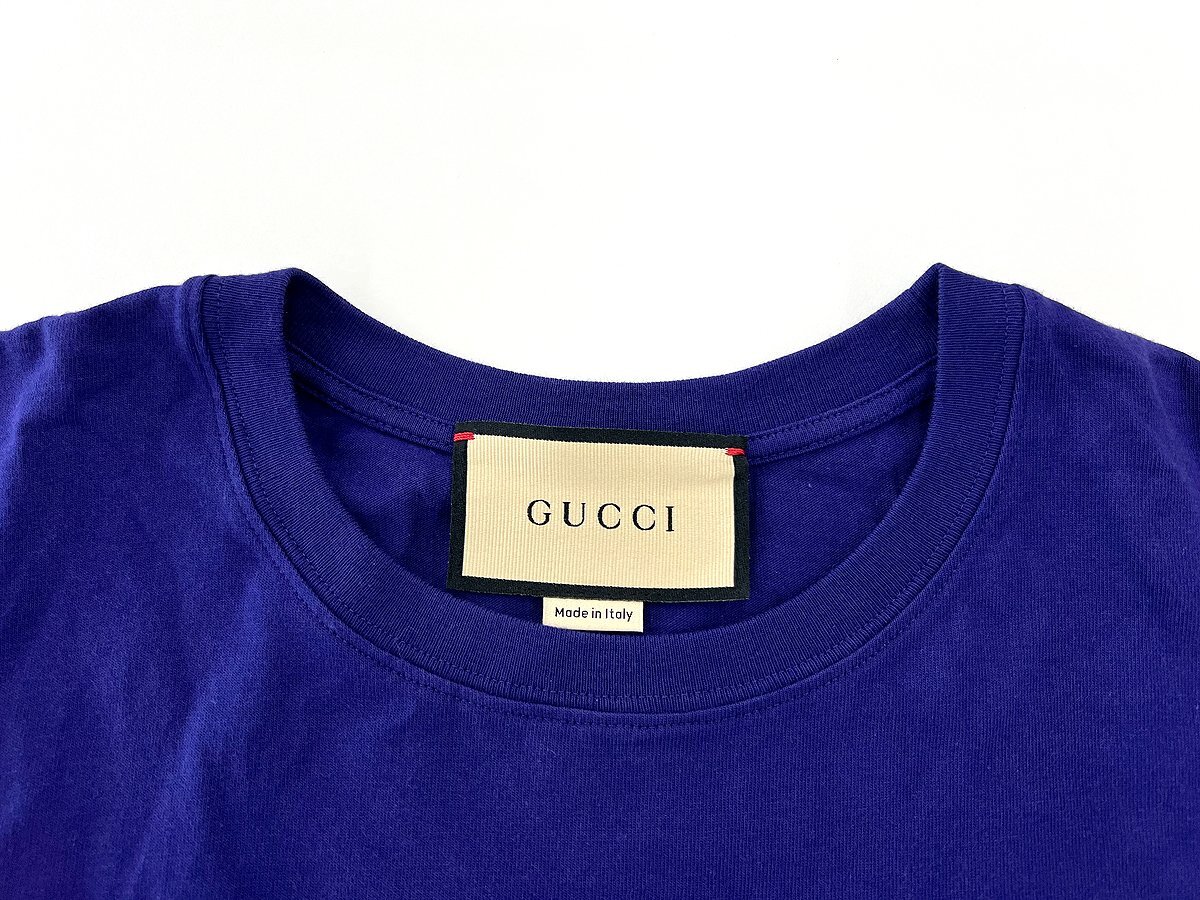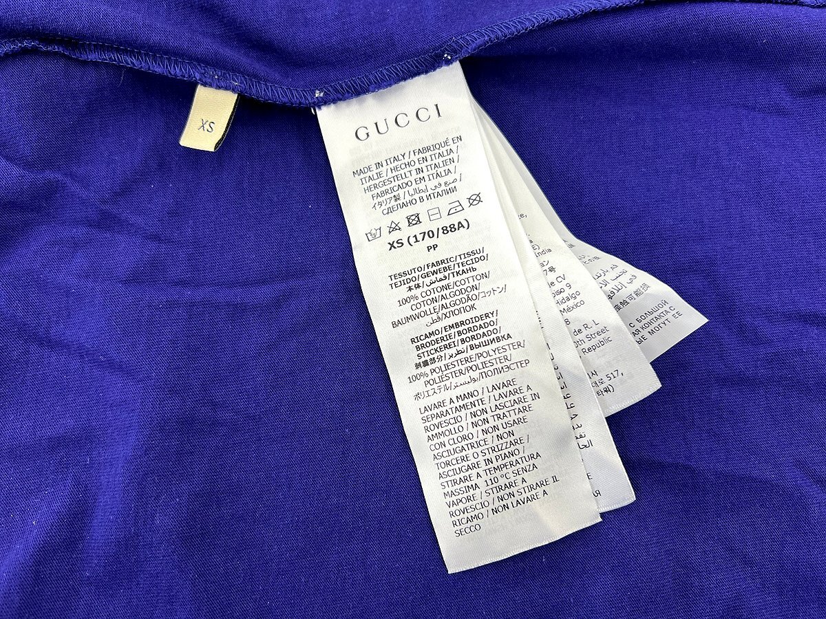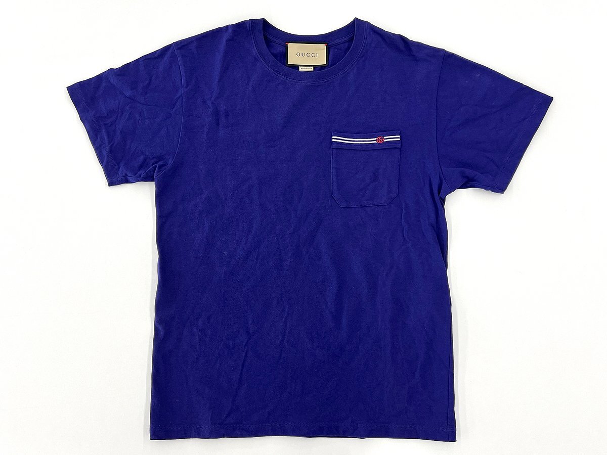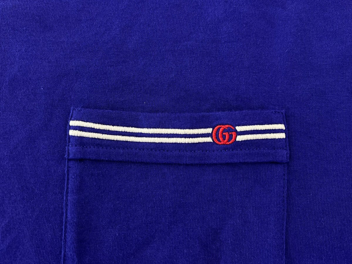 GUCCI/グッチ エンブロイダリー付き コットンジャージー Tシャツ XS ブルー系 胸ポケット |