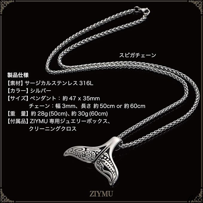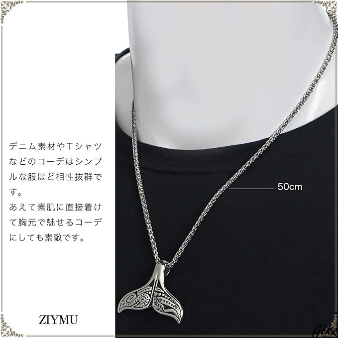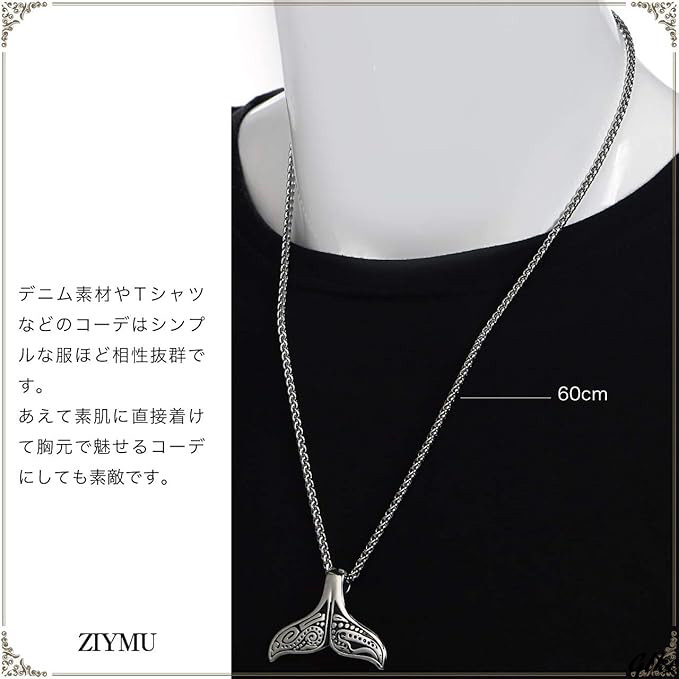 このホエールテールモチーフのペンダントネックレスは、その個性的なデザインと高品質な素材で、