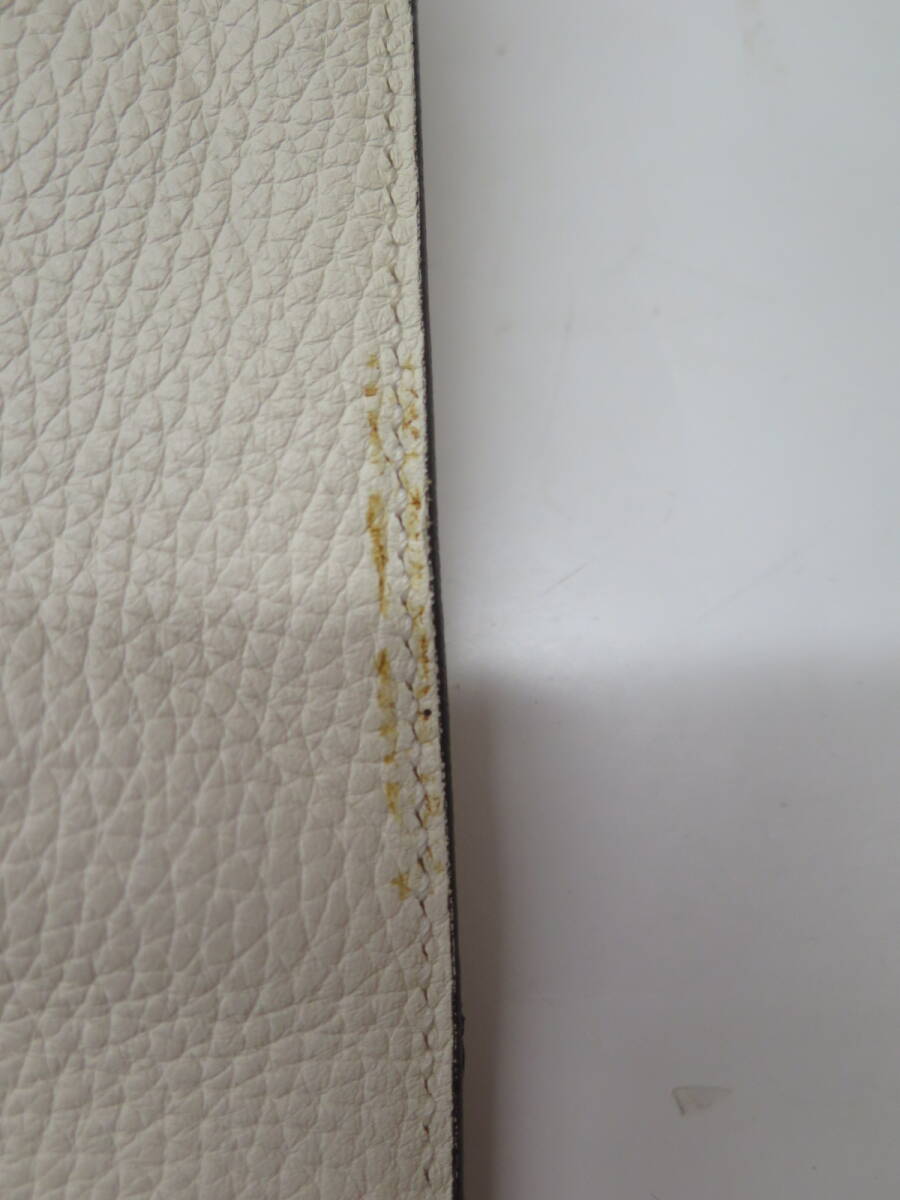 色がアイボリーになりますので全体的に使用に伴う薄汚れ、画像6のような点汚れ、画像9のような汚れ、画像8 荷物の出し入れによるスレ汚れなどございます。
