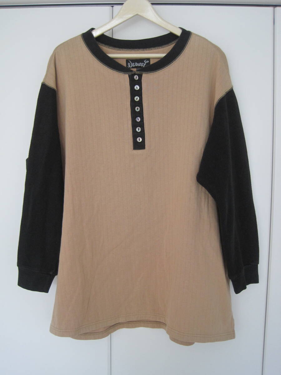 NEXUSVII ネクサスセブン 袖切替ヘンリーネック 7部丈 カットソーになります。着用感があり、写真の様な汚れがあります。カラーはベージュ×黒、サイズはL、素材などは品質タグが消えているため不明ですが、おそらくコットンです。肩幅54cm、袖丈47cm、身幅62cm、着丈69cmです。素人の採寸ですので若干の誤差、商品状態はご了承ください。 落札後は、ノークレーム、ノーリターン、ノーキャンセルでお願いします。発送方法はレターパックです。ほかにも色々出品していますので良かったらご覧ください。