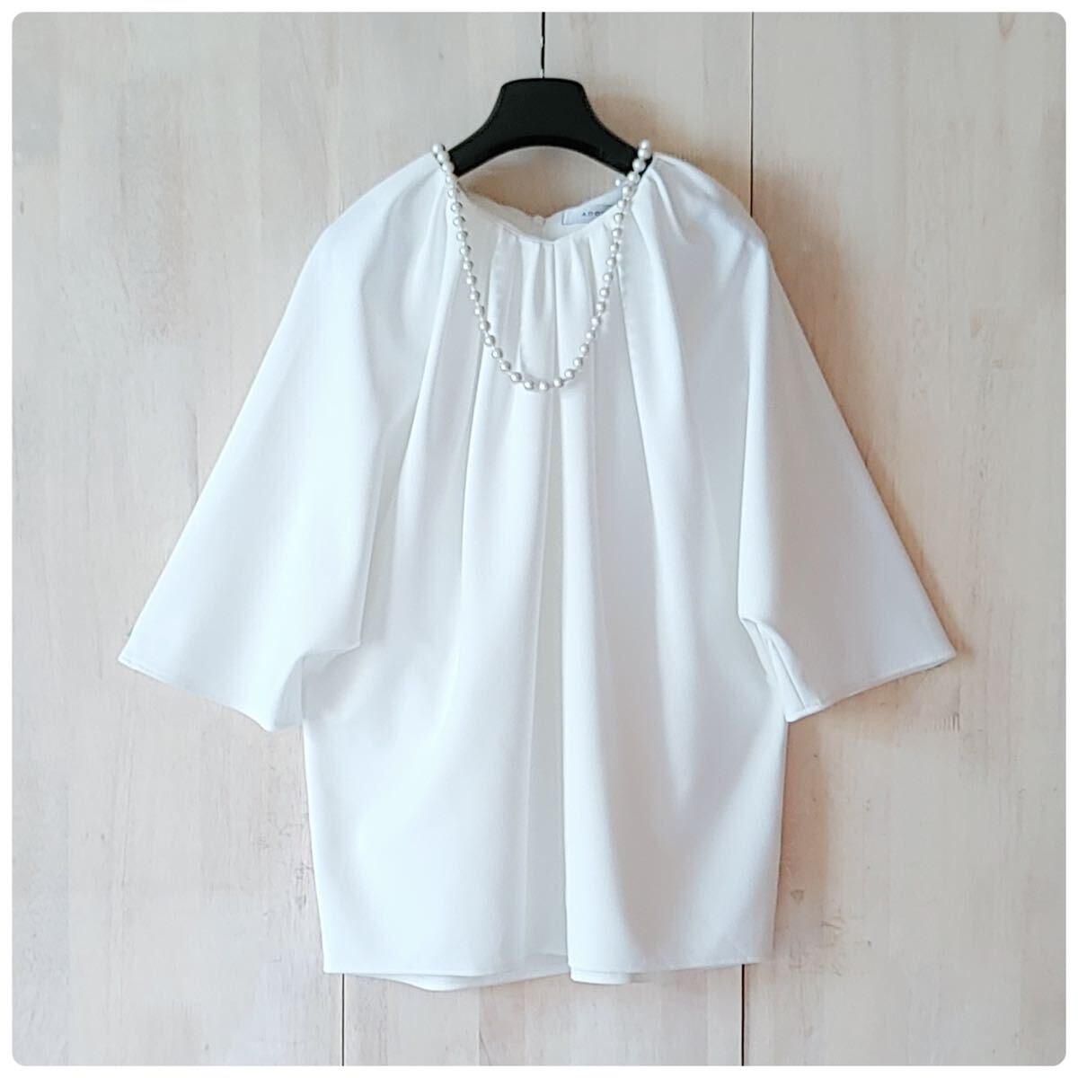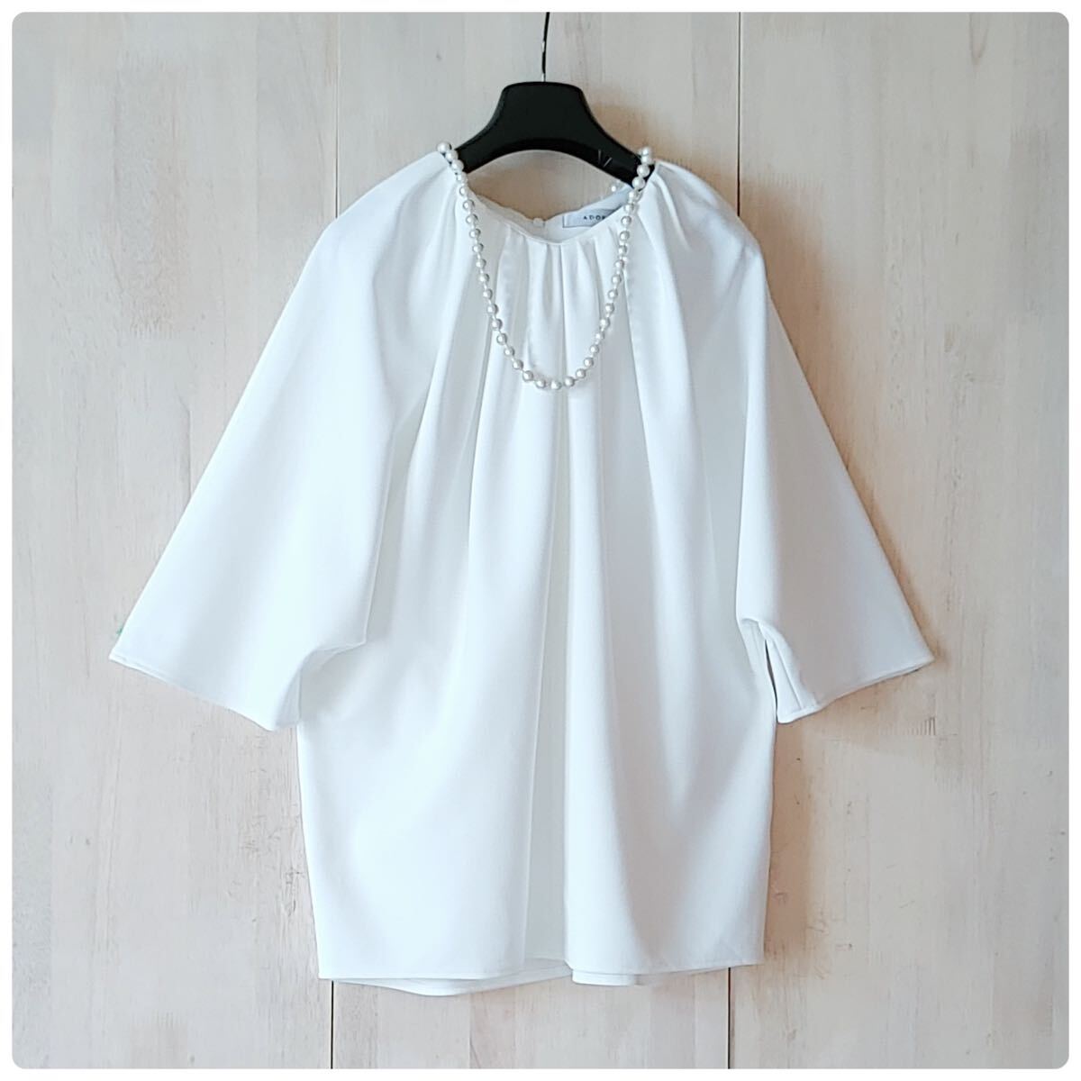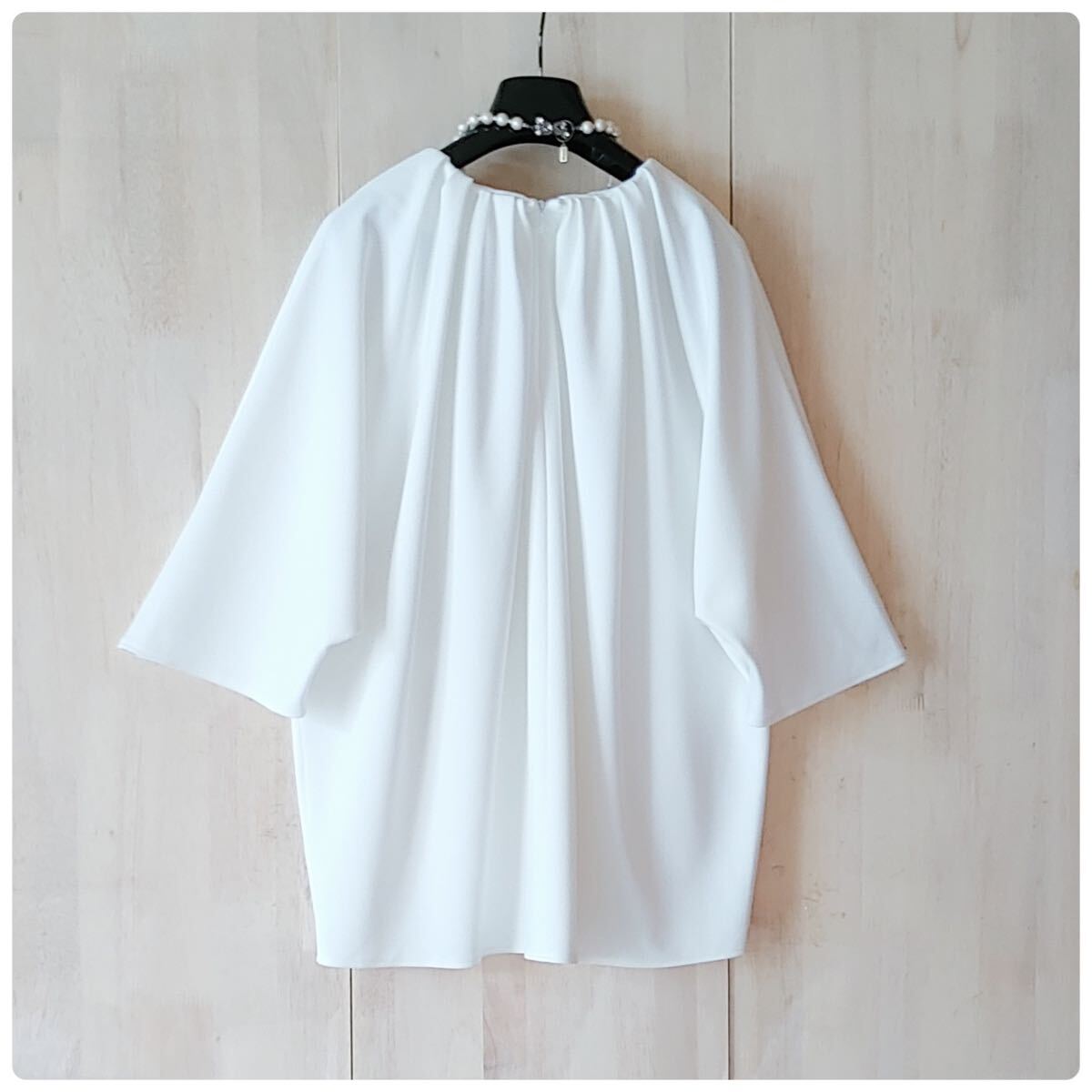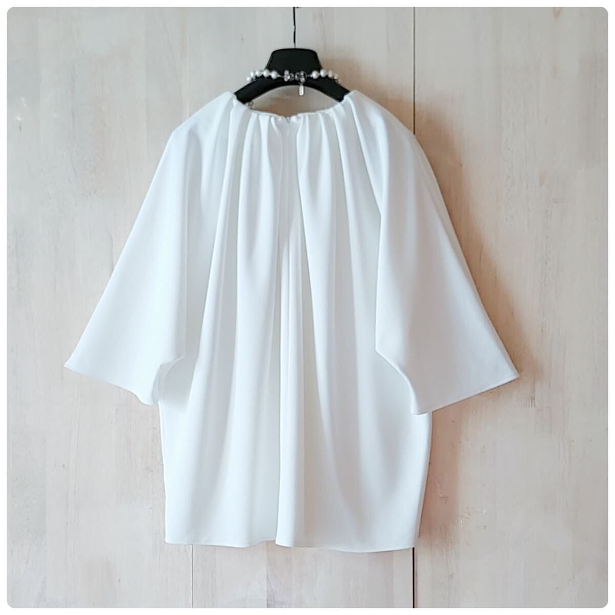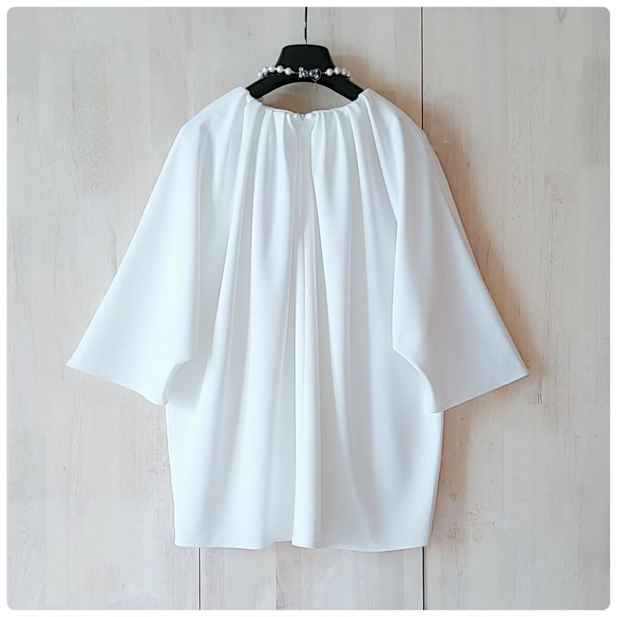 襟ぐりにランダムに寄せられたタックとギャザーが華やかな印象に。