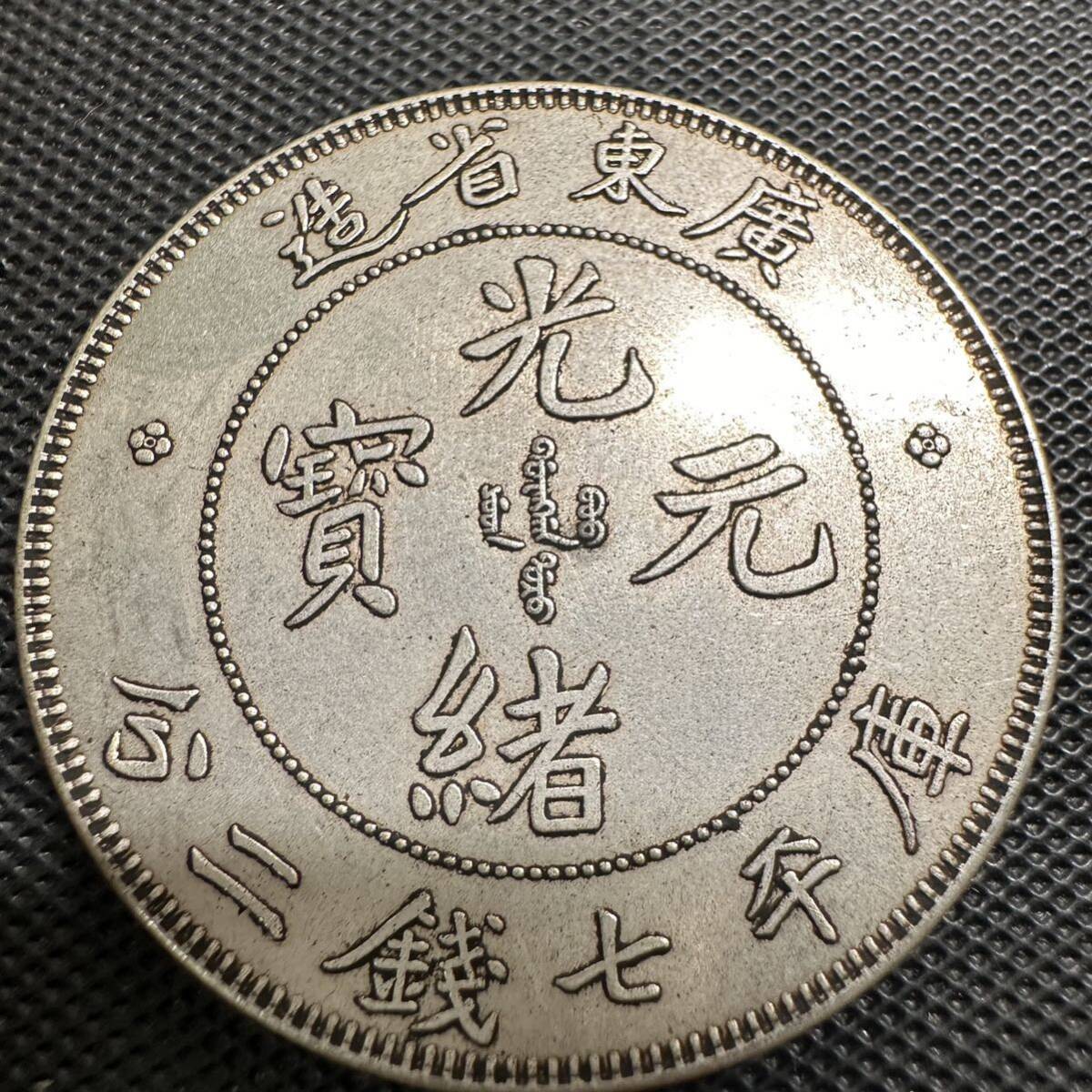 中国古銭 光緒元寶 大清 光緒元宝 銀幣 廣東省造 庫平七銭二分 大型コイン コイン C11 重さ26.4g 硬貨