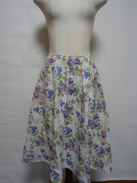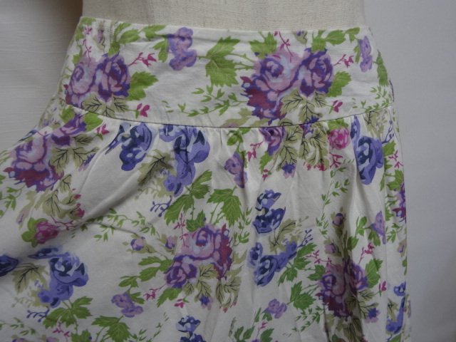 美品*ローラアシュレイ*9*綿スカート*花柄スカート*夏*白地に柄*フレアースカート*ボトム*M*38