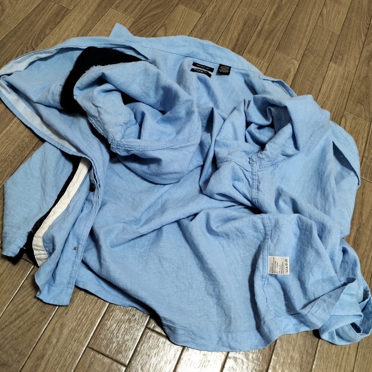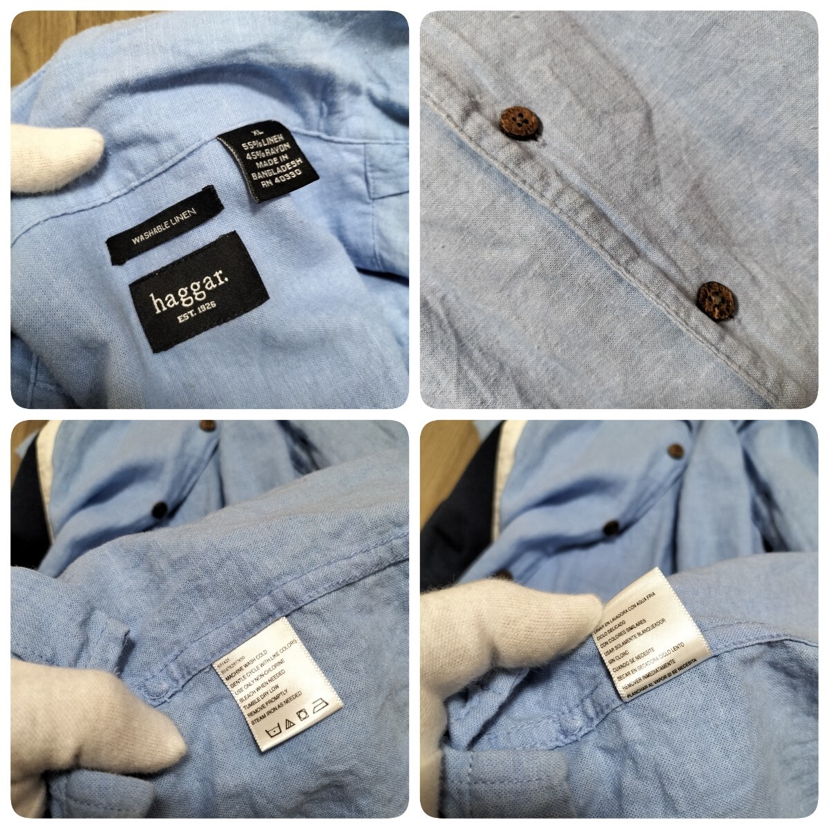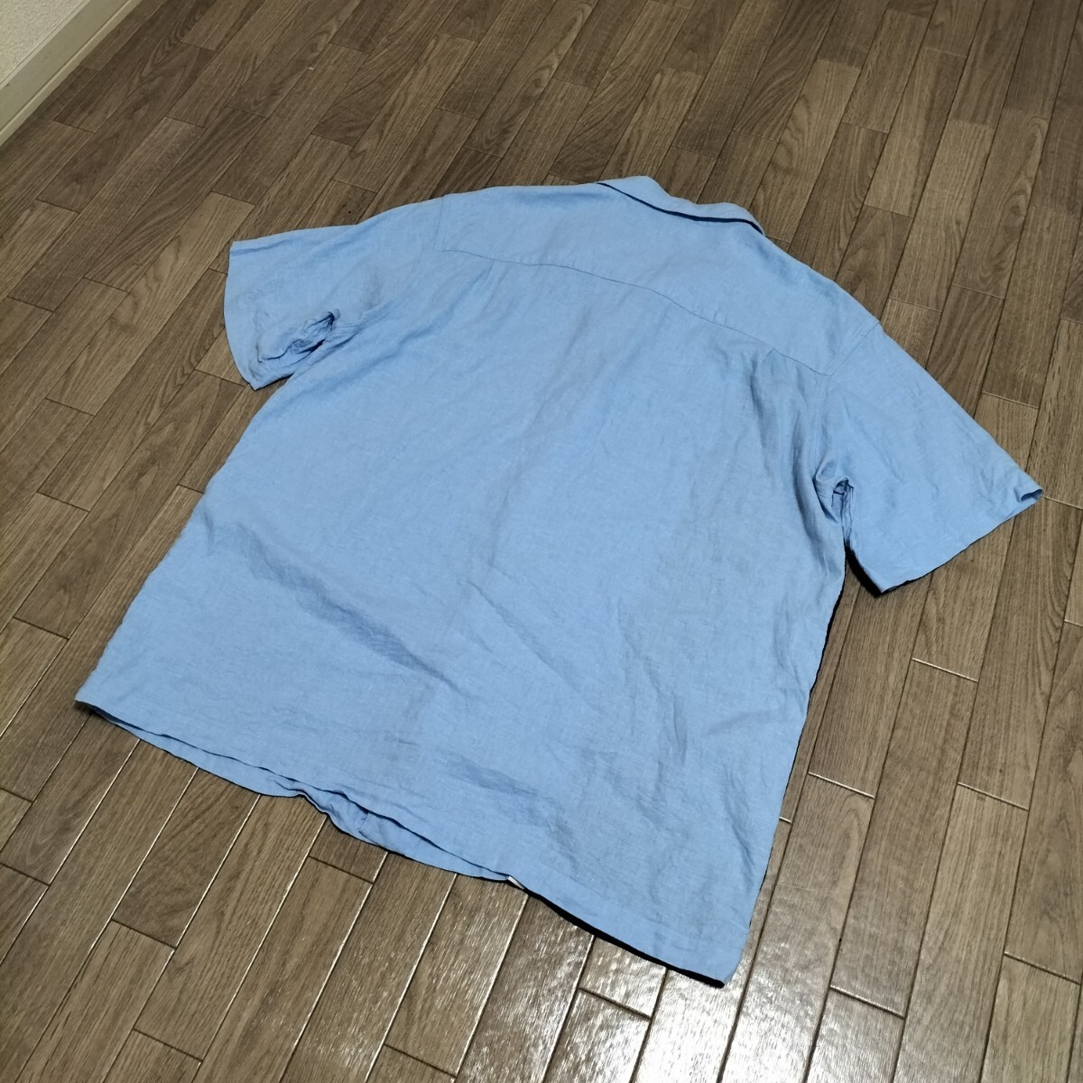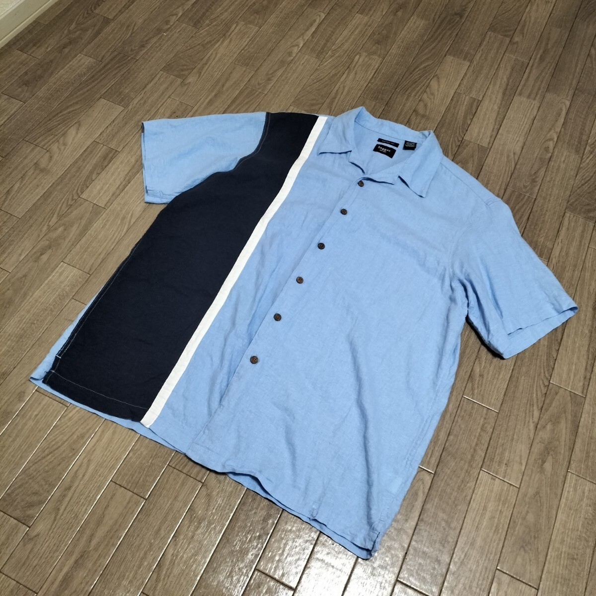 ☆90s haggar リネン レーヨン オープンカラー 開襟 半袖 シャツ トップス ライトブルー 水色 青系 ライン メンズ サイズXL ヴィンテージ オールド ハガー ブランド 古着 USED