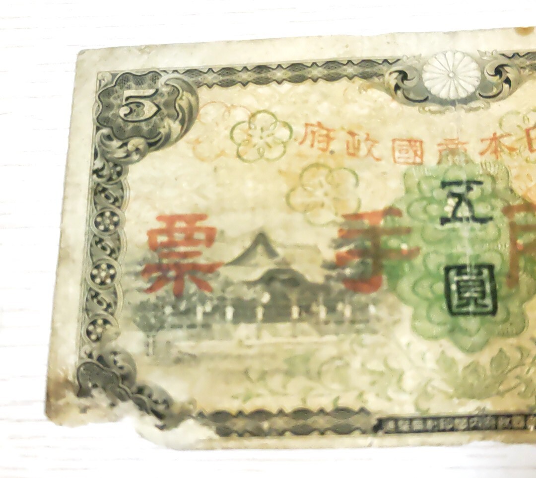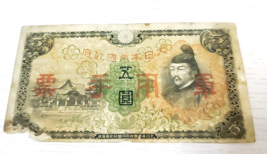 軍用手票 日華事変軍票 菅原道真 大日本帝国政府 丙号5円 紙幣の出品です。
