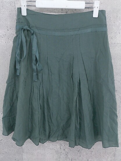 ◇ MACPHEE マカフィー TOMORROWLAND シルク混 膝丈 フレア スカート 36 グリーン *