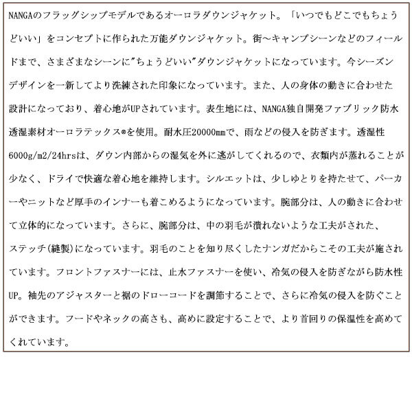 商品名 | NANGA (ナンガ) ND2341-1A301 AURORA DOWN JKT メンズ オーロラ ダウンジャケット M.GRAY XL N016 |