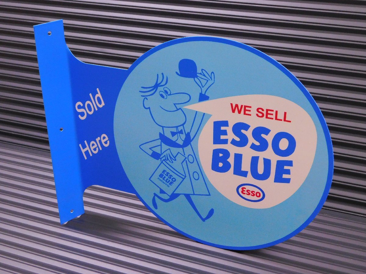 【ESSO BULE・エッソブルー】※《フランジメタルサイン・両面プリント》 アメリカン雑貨 ブリキ看板 ガレージ