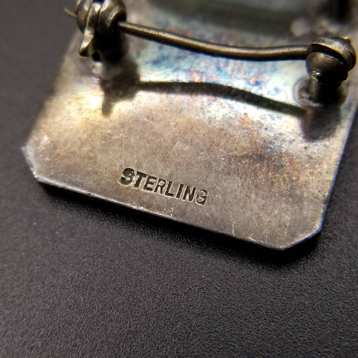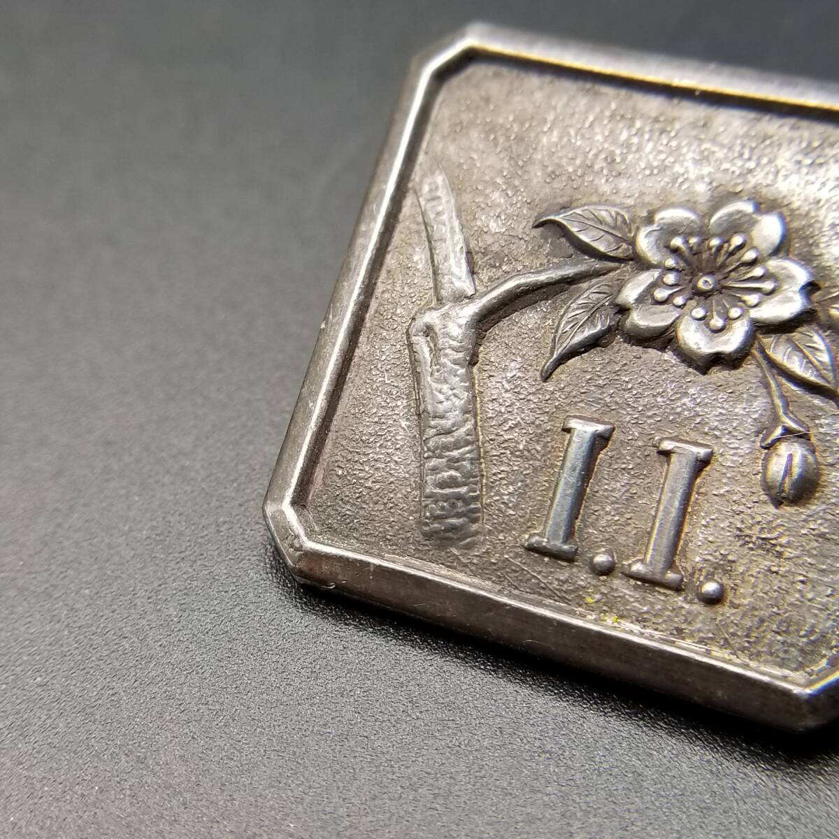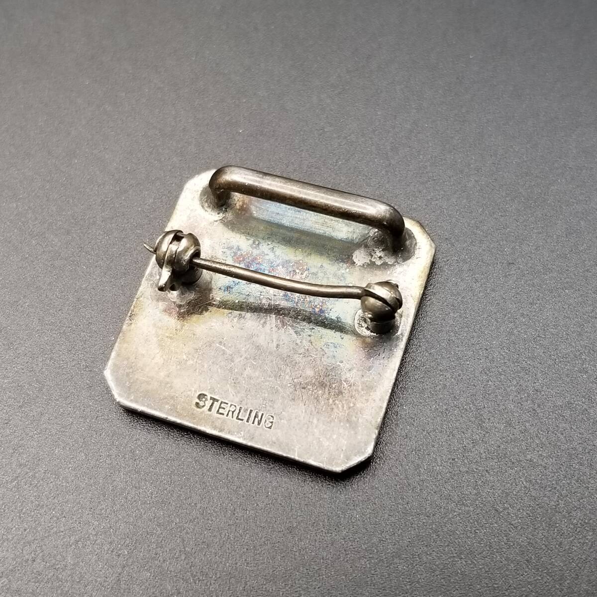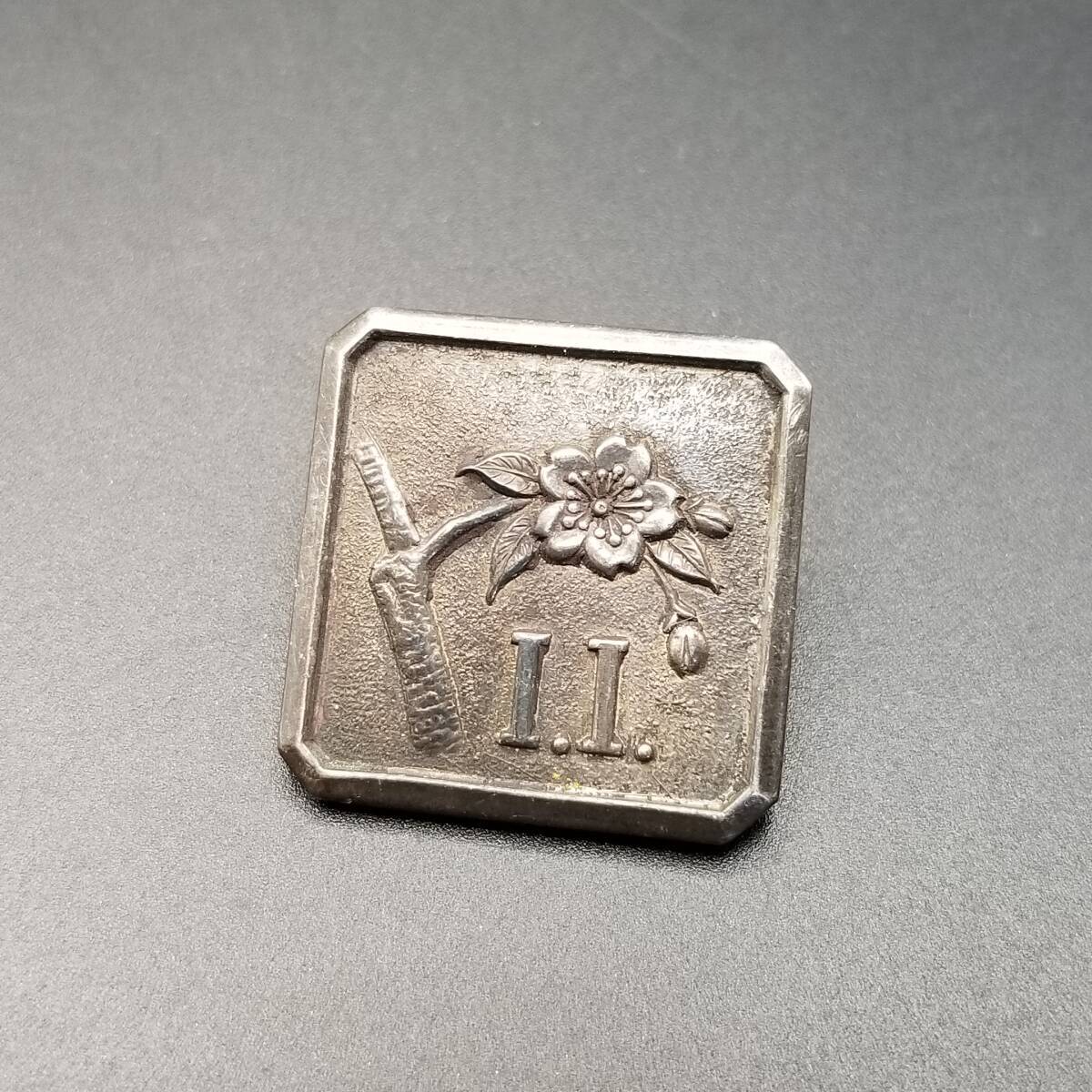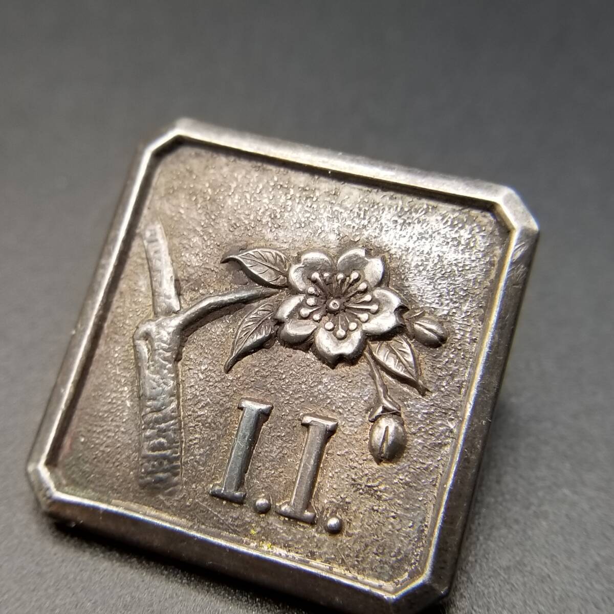 桜の花 額縁 スクエア 925 シルバー ヴィンテージ ブローチ フラワー 日本画 ワンポイント ラペルピン 銀 彫金 イニシャルレター I.I Y17-S