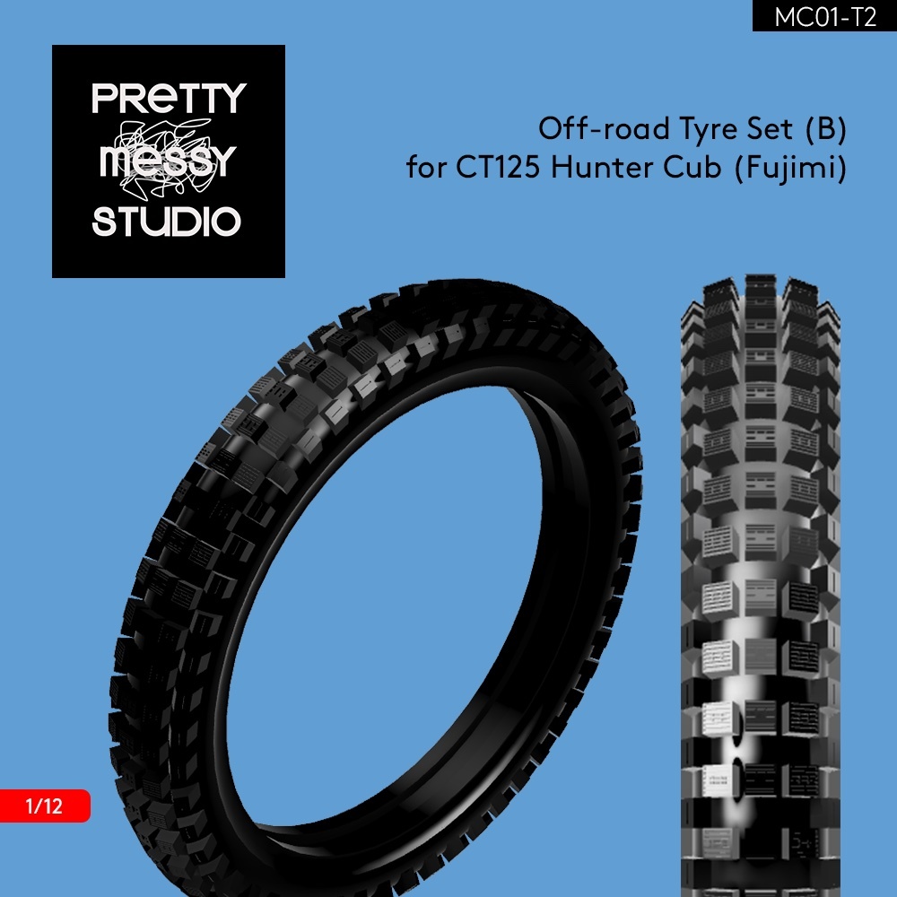 3Dプリンターオフロードタイヤセット2 フジミ 1/12 CT125 ホンダ ハンターカブ Honda Hunter Cub オートバイ