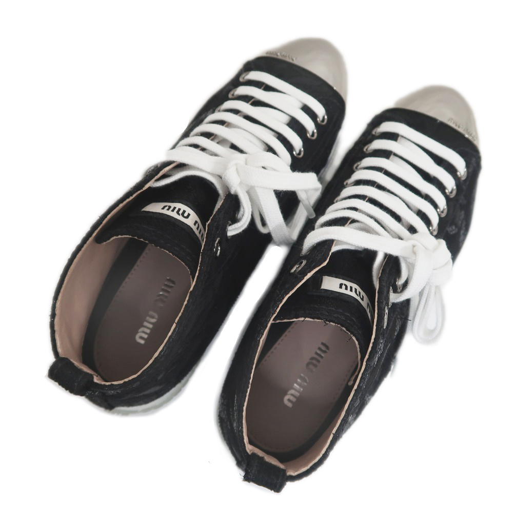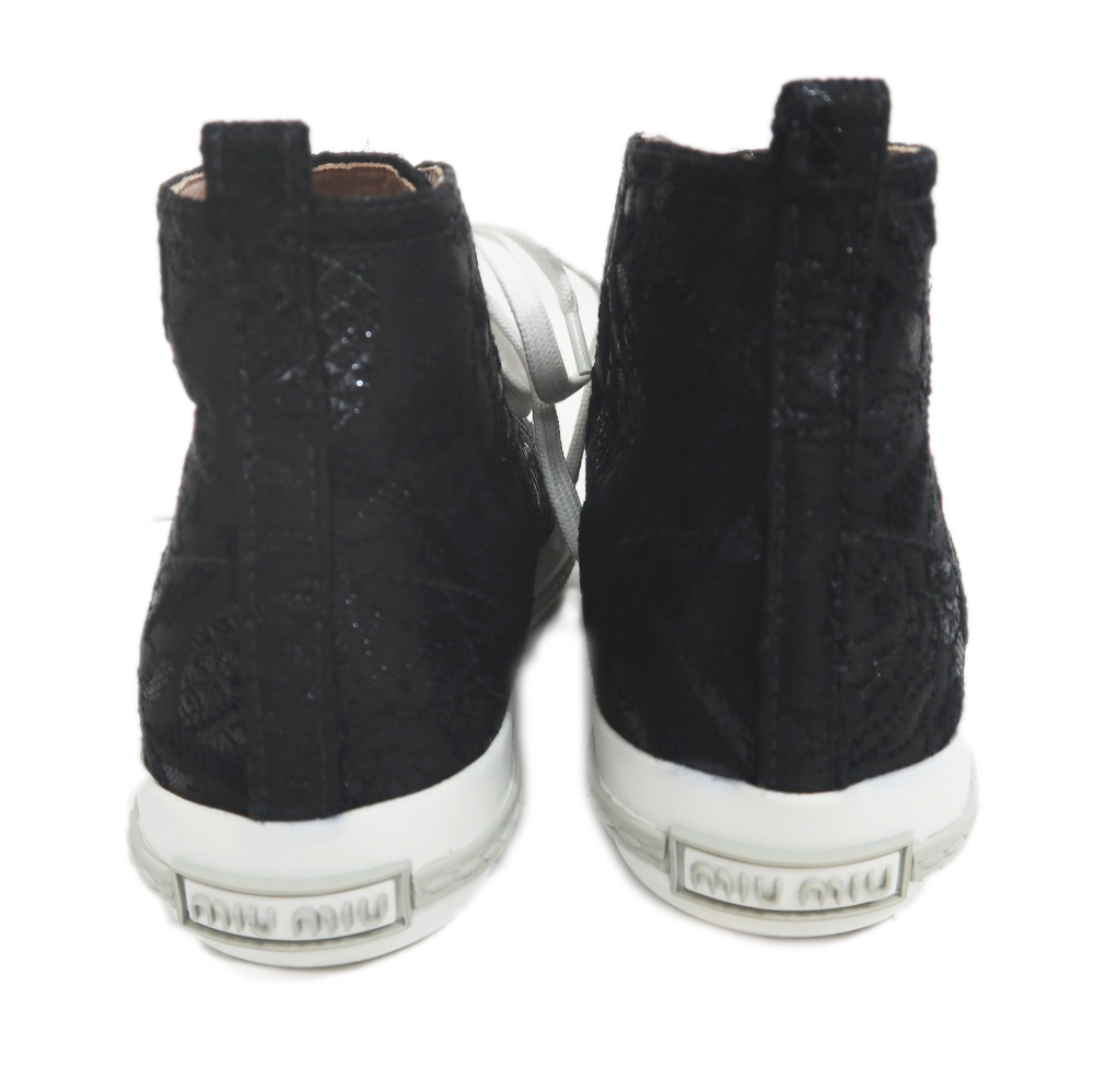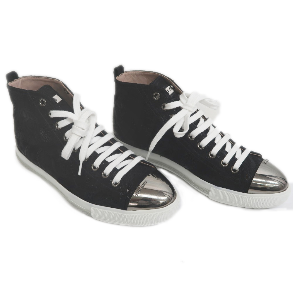 【名東】ミュウミュウ ハイカットスニーカー 黒 刺繍風模様 サイズ37 1/2 レディースシューズ 女 靴