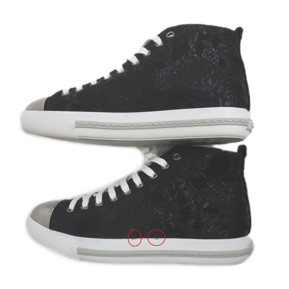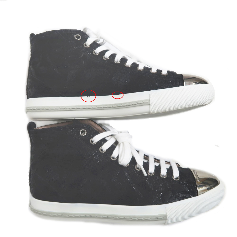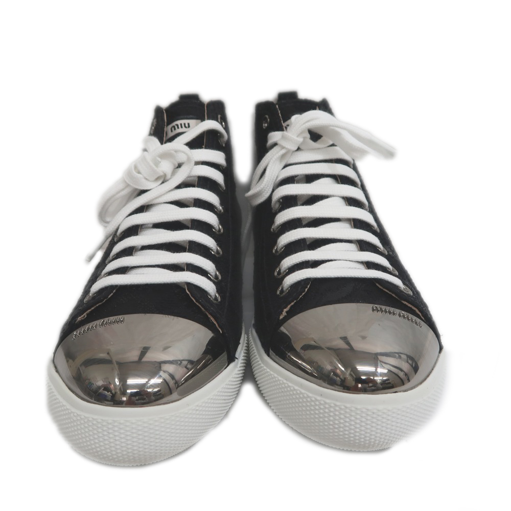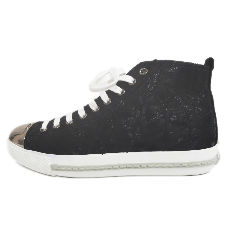 【名東】ミュウミュウ ハイカットスニーカー 黒 刺繍風模様 サイズ37 1/2 レディースシューズ 女 靴