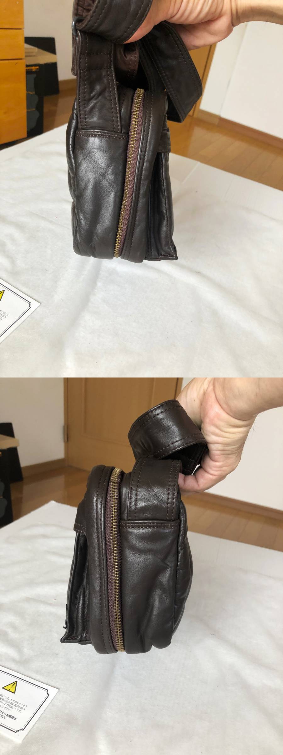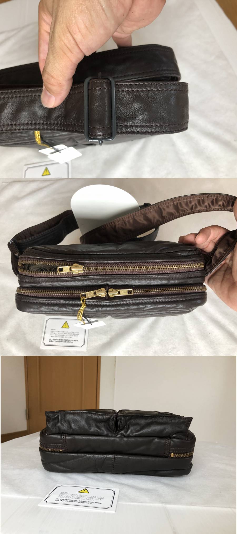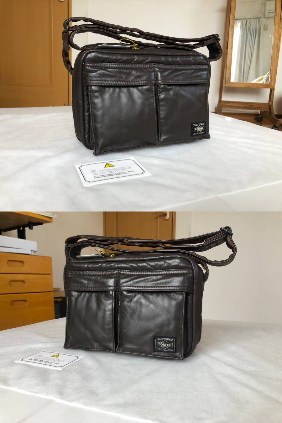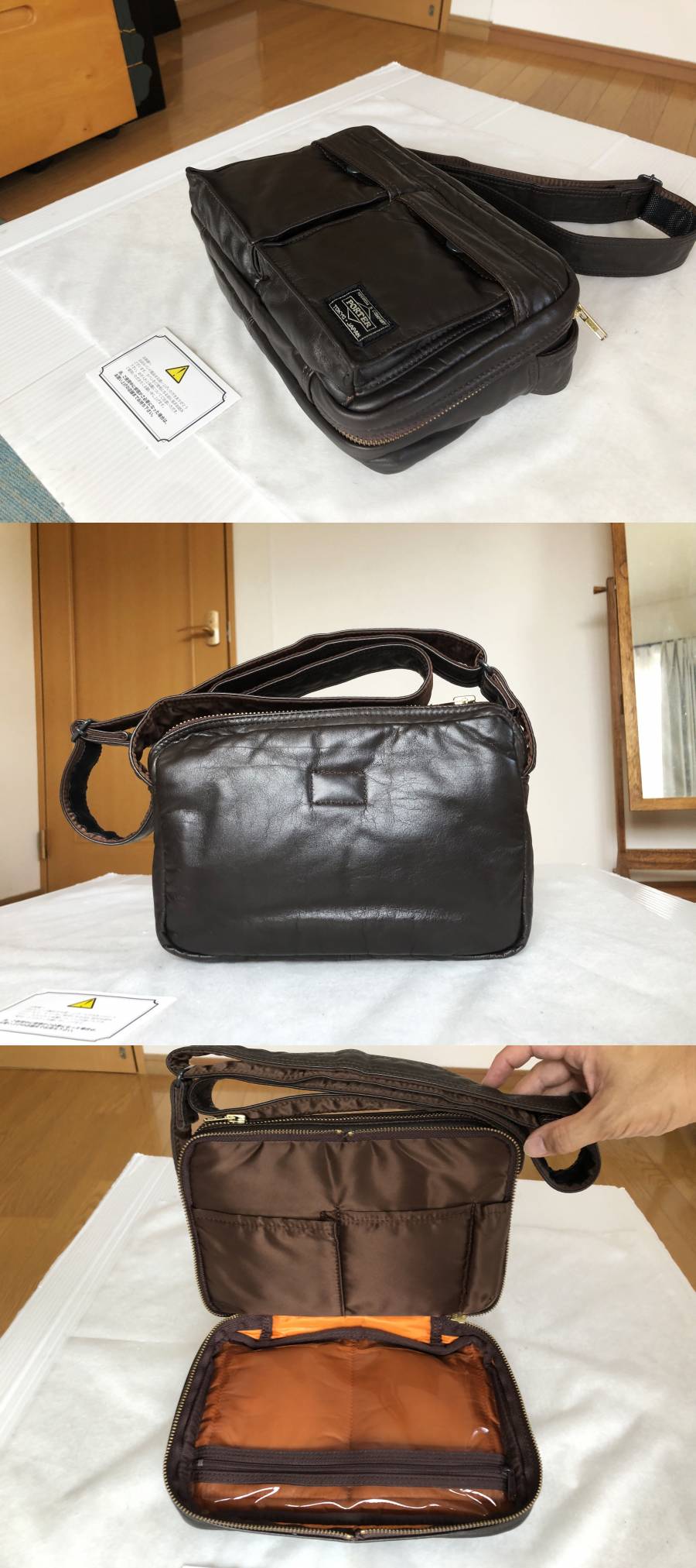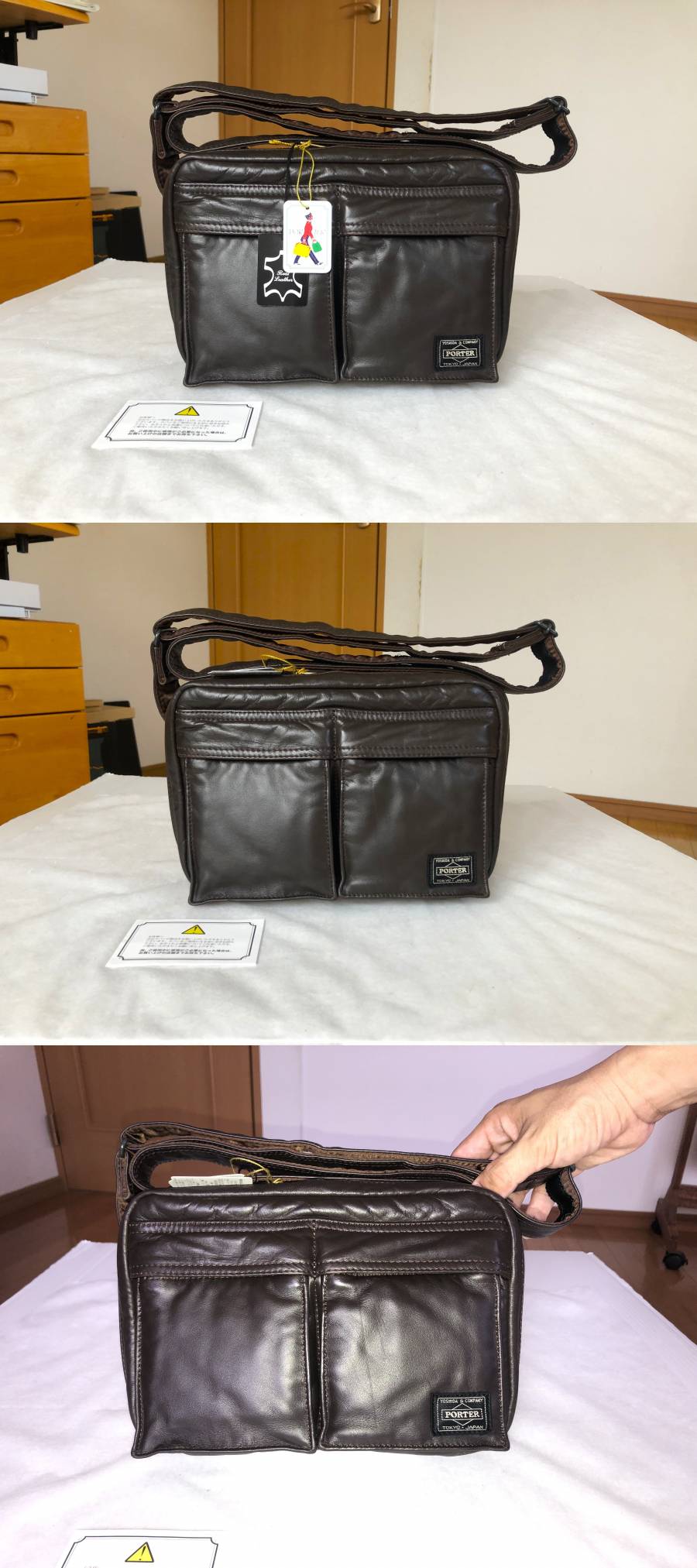 ご覧いただきありがとうございます。 ほぼ新品ですのでぜひご検討ください♪ 廃版後も激人気の高級シリーズ クラチカ タンカーレザーです!!!! サイズ2種類出ていますが、小さい方のSサイズです♪ お出かけするのにちょうど良いサイズです♪ カラーは、ブラウンです♪ 探されているかとも多いと思います。 ぜひご検討ください♪ <商品説明> ポーター×レザータンカー ブラウン ショルダーバッグ になります。 定価約:38,000円ですが、廃盤後も大人気でプレミアついてます!!!! サイズ当方計測:横26cm×高さ18cm×まち6cm。 このバッグと全く同じサイズの普通のタンカーの 着丈をUP致しましたのでご参照ください。 ショルダーひも1M ※長さ調節可能です。 <商品説明> 新品をいただきましたが、 ほぼ利用しておりませんので 画像より大変きれいなバッグです。 ほぼ新品と思っていただき差し支えございません。 フラッシュ画像もUP致しました。 表面も大変きれいです♪ (ポケットに少し縦線が見えますが、 もともとのレザー生地の流れの線になります。 傷ではございませんのでご安心ください♪) ロゴきれいです♪ チャックぴかぴかです♪ 背中面も底面も下角ももきれいです♪ 中身も両層きれいです♪ 大変きれいなほぼ新品商品ですが、 1度は、人の手に渡ったものですので あまりにも細かいことを気にされる方は、ご遠慮下さい。 郵送は、ゆうパックです。 このサイトでもまず出品されませんのでぜひご検討ください。 即決もありますので早いもの勝ちです♪