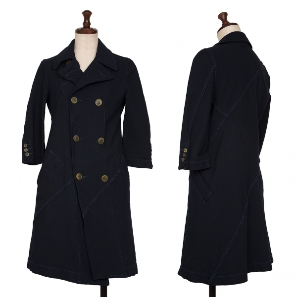 | コムコム コムデギャルソンCOMME des GARCONS エステルスパイラルハーフコート 紺XS |