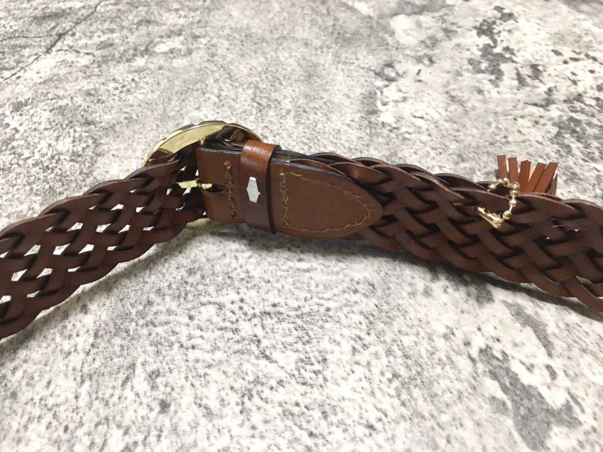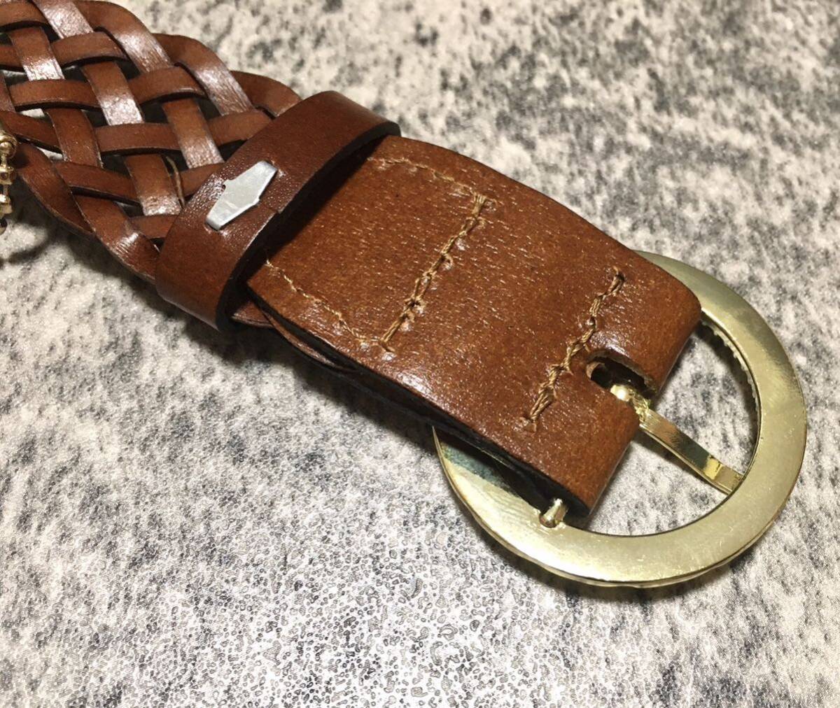 バックルにベルトを通す時には、指で押さえ、ベルト幅を収縮させながら通してください。