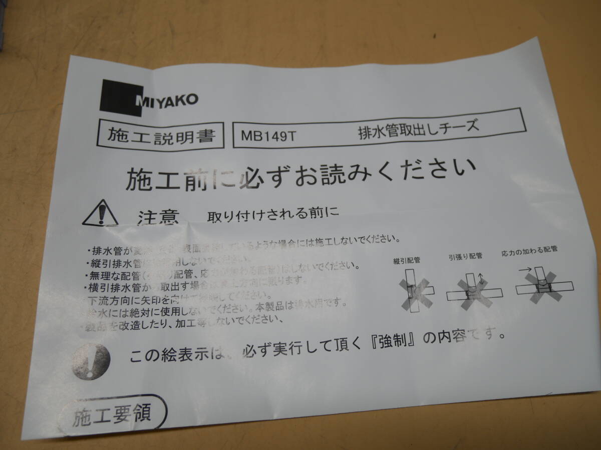 ミヤコ 排水管取出チーズ MB149T-100x75 2個セット 即決価格 | |||