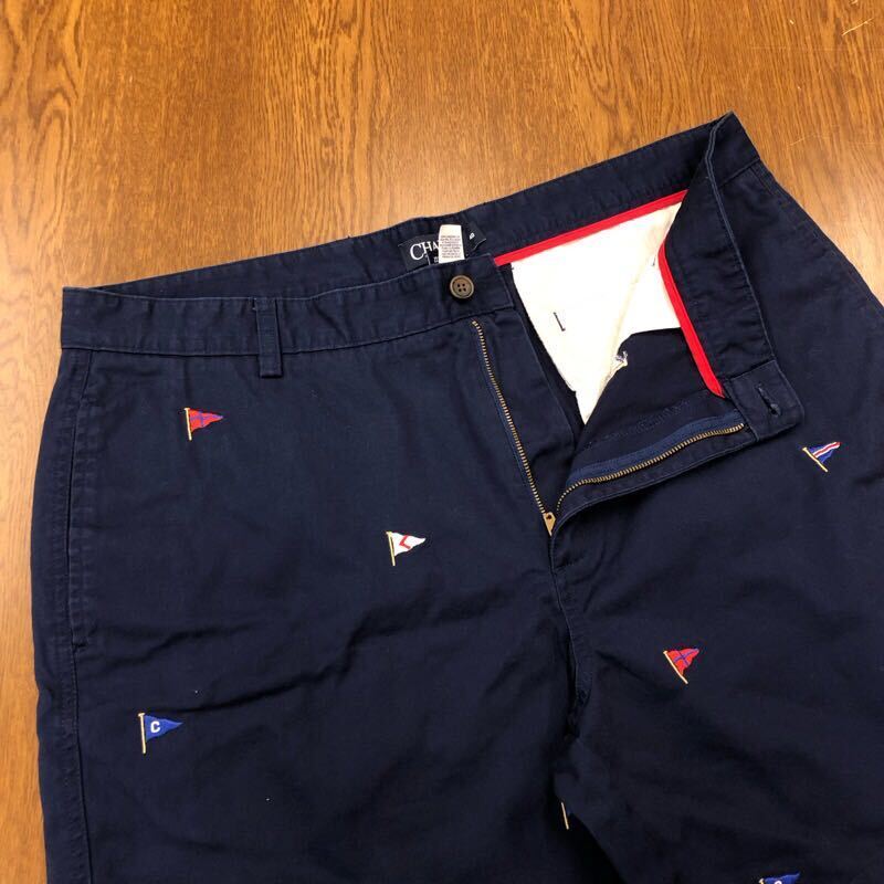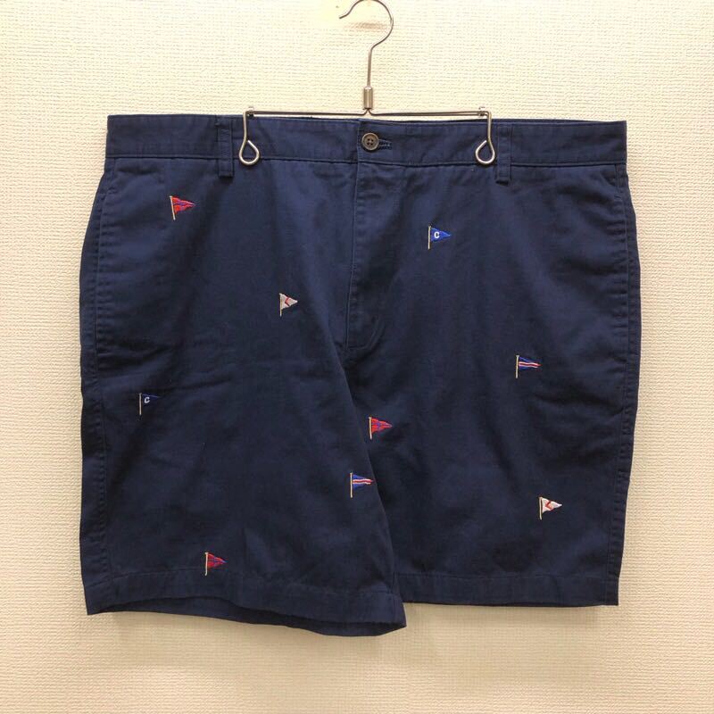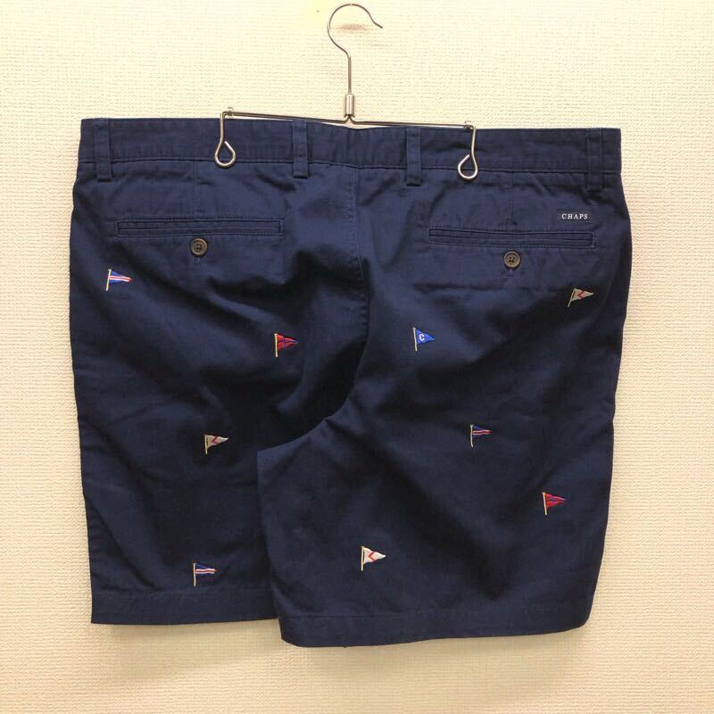 【FG199】CHAPS W40 大きいサイズ ビッグサイズ 刺繍チノハーフパンツ ネイビー メンズブランド古着 チャップス ショートパンツ 送料無料