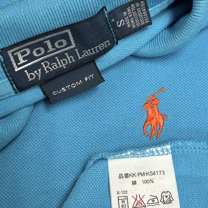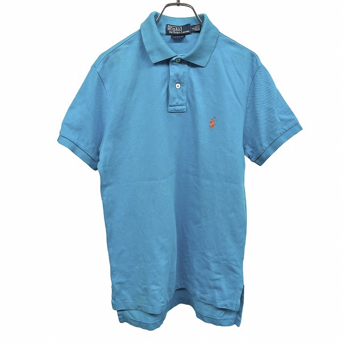 商品タイトル | ポロバイラルフローレン ポロシャツ 丈長め 鹿の子 刺繍 ロングテール 半袖 綿100% S ブルー 青×オレンジ メンズ(レディース?) |