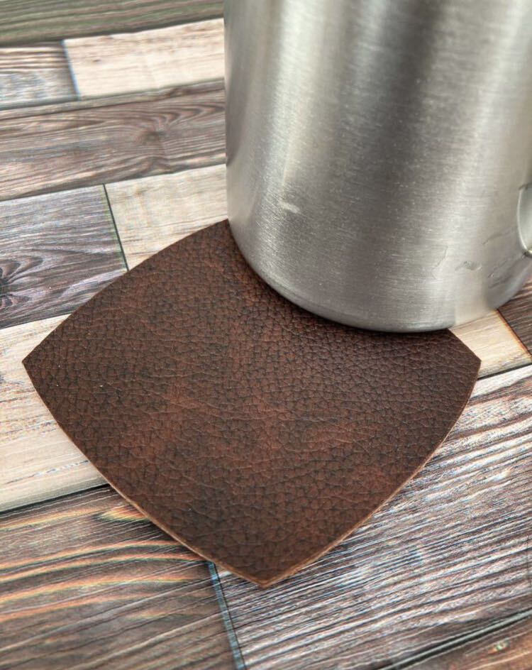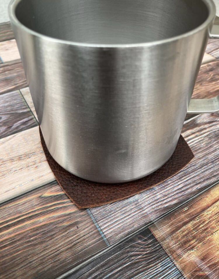 約1.2mm厚のボルドーブラウン色のヌメ革、牛革のオイルレザーを使ったコースターです。