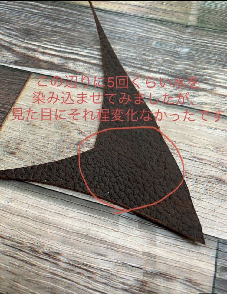 ただのヌメ革は水を吸いますが、これはオイルレザーなので吸いにくいです。