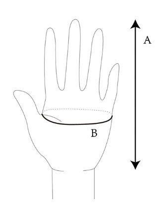 • 一般的な成人女性にフィットする大きさとなっていますが不安な方は掲載画像の最後を参考に手のサイズ(AとB)をお知らせください。適したサイズのものをご提供させていただきます。