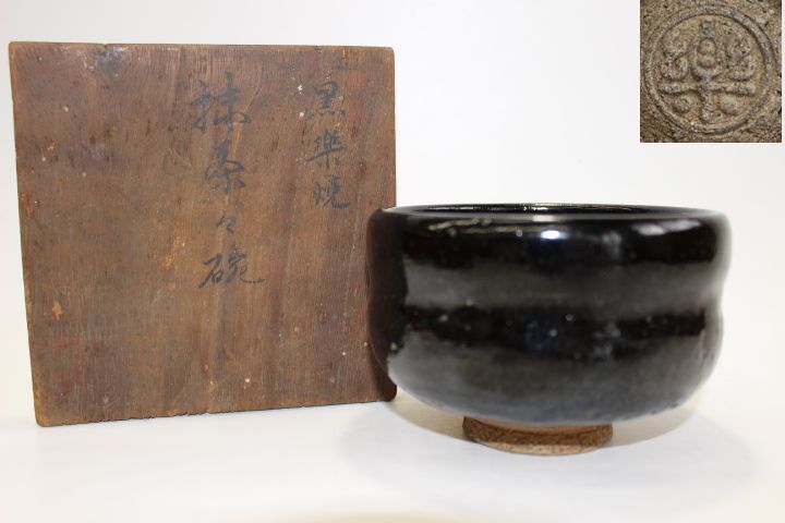 f81 技工名品 時代物 楽 在印 黒楽茶碗 楽焼 抹茶碗 時代箱 茶道具 保証品