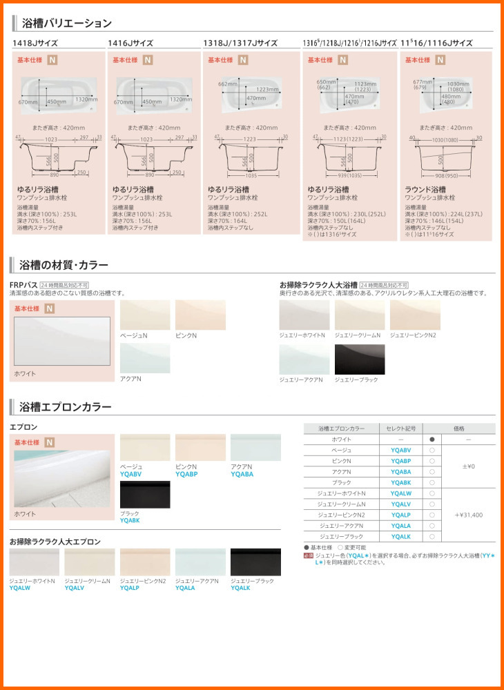 | 注意事項 | ■送料■ 全国無料です。(離島は送料がかかる場合がありますのでご相談下さい) 時間指定・土日祝・夜間の配送は出来ません。 ドライバー1名で車上渡しとなります。(階上搬入などは出来ません) ■納期■ 通常は発注後2週間以降の納品になります。(ご入金確認後発注) お急ぎの場合は事前にご連絡下さい。 ■組立設置■ ご希望の方は別途お見積り致します。 ■その他注意事項■ 追い炊きなしの場合、浴槽側水栓が必要となる場合があります。 寒冷地にお住まいの方は、寒冷地仕様をご指定下さい。 ■返品・交換について■ お客様のご都合による商品の返品・交換は承っておりません。 十分ご確認の上、ご入札をお願いいたします。 ※その他ご不明な点はお問い合わせ下さい。 |