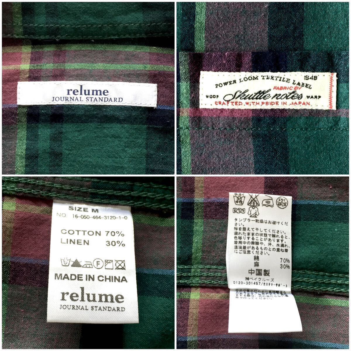 美品 JOURNAL STANDARD relume Plaid shirt ジャーナルスタンダード レリューム チェックシャツ Mサイズ ベイクルーズ ショートスリーブ