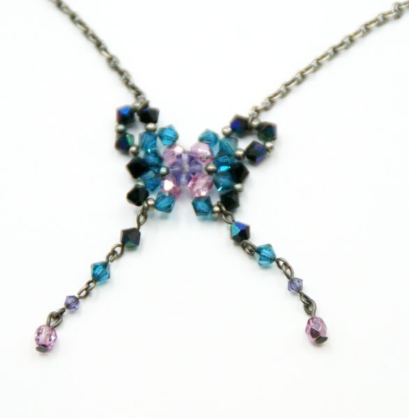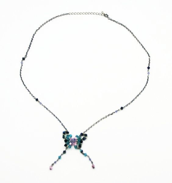 【アクセサリー】 Nec014 ネックレス ペンダントトップ 蝶々 カラーストーン 半折り全長290㎜/中古