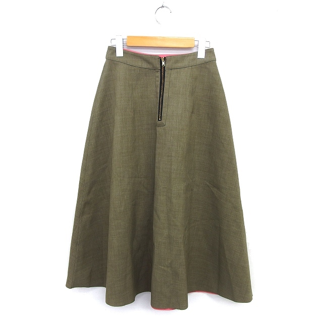 アンデミュウ Andemiu スカート フレア ロング マキシ丈 バックジップ シンプル S カーキ /NT32 レディース
