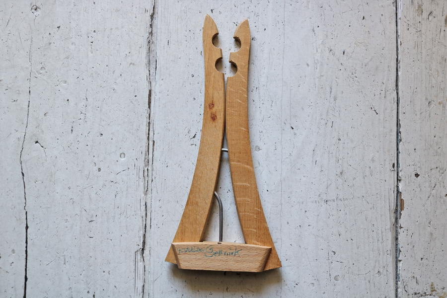 木にスリットを削り出し、フックを収納できるように細工がされている
