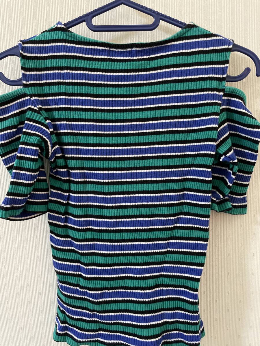 SISTER JENNI 肩出し ボーダー半袖 Tシャツ グリーン ブルー 夏用 女の子 150 服 かわいい 子供 ジェニー ジェニィ 即決時特定記録付