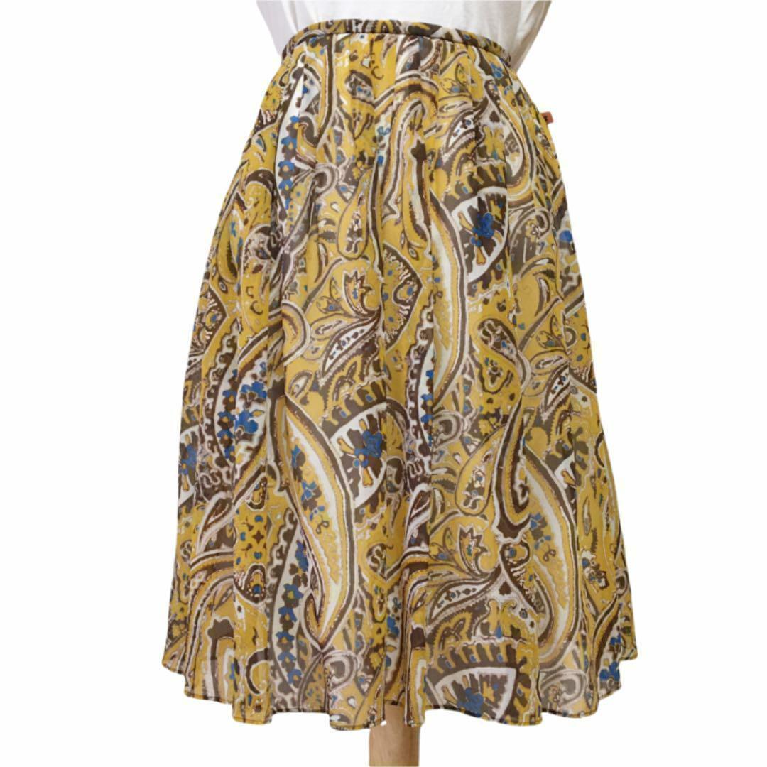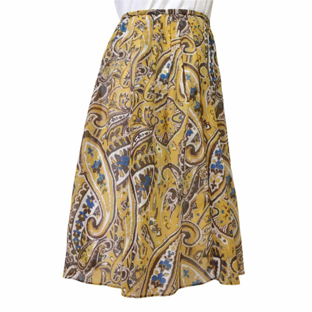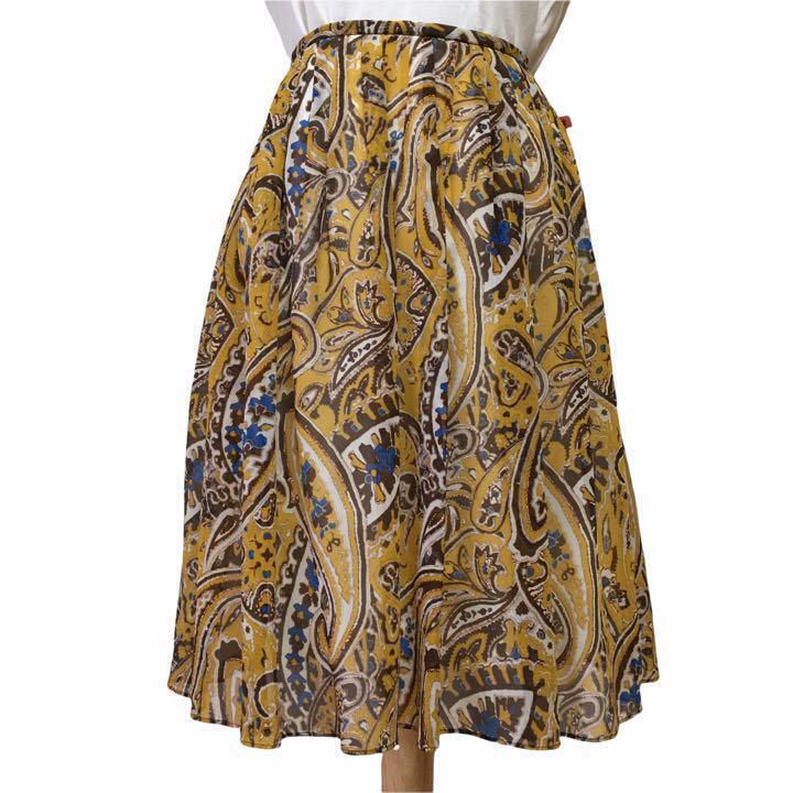 ru157 タックフレアスカート ペイズリー柄 オフィス デート ひざ丈 エアリーフォルム オリエンタル アジアン