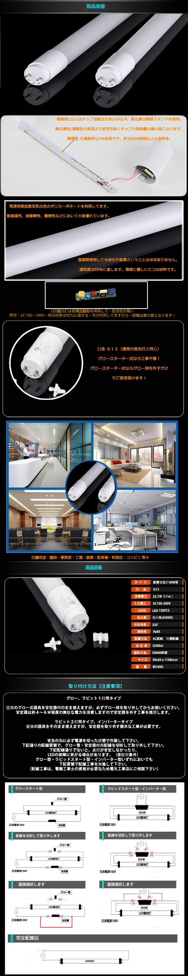 25本1セット 高輝度LED120チップ2500LM直管型LED蛍光灯G13/40W形120cm対応品/昼 光色6500K/発光320° グロー式工事不要/ 1年保証