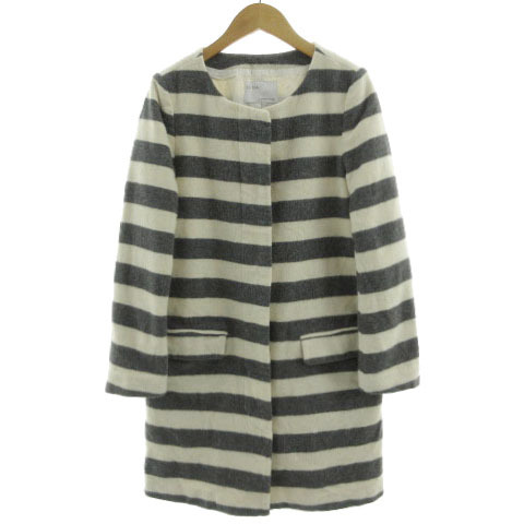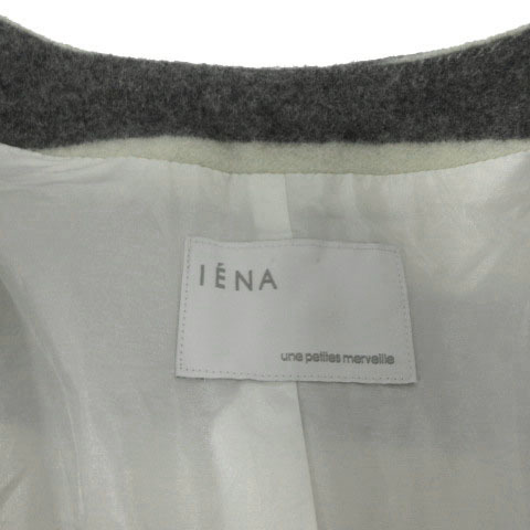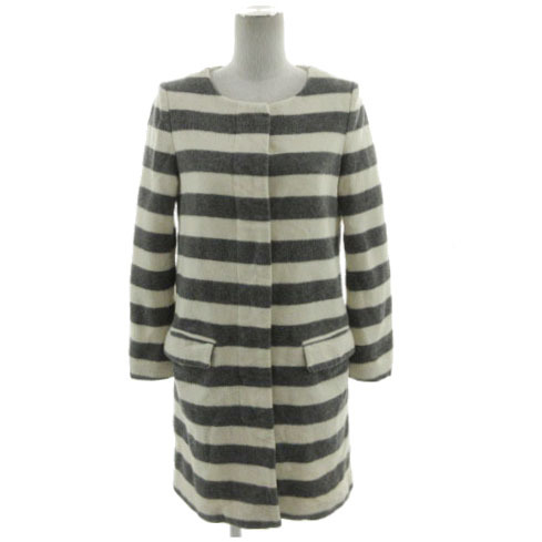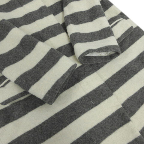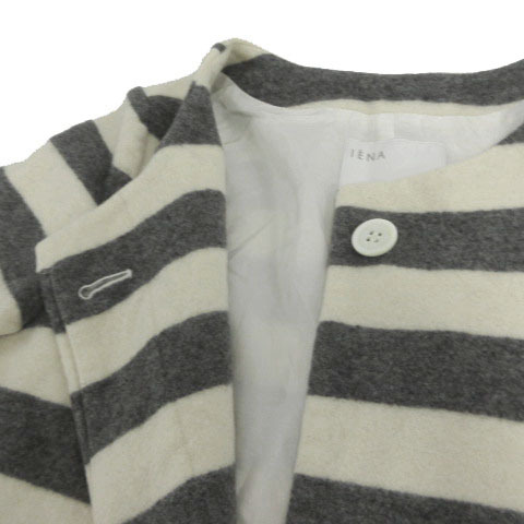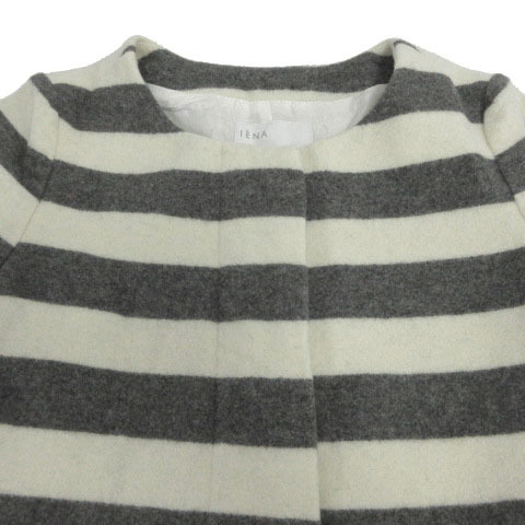 イエナ IENA コート ノーカラー 起毛 日本製 ウール混 ボーダー アイボリー グレー レディース