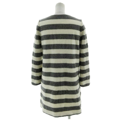 【仕様】コート ノーカラー 起毛 日本製 ボーダー フロントボタン留め フロントポケット2つ 品番10-020-900-1010-4-0