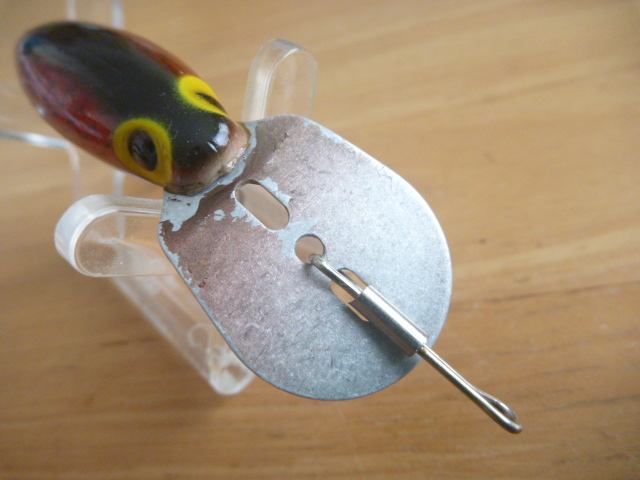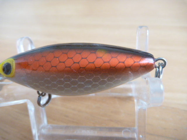 リアフックアイの背中部の出品写真で線上に見えるのはクラックではなく、ルアーの張り合わせ面の隙間になります。
