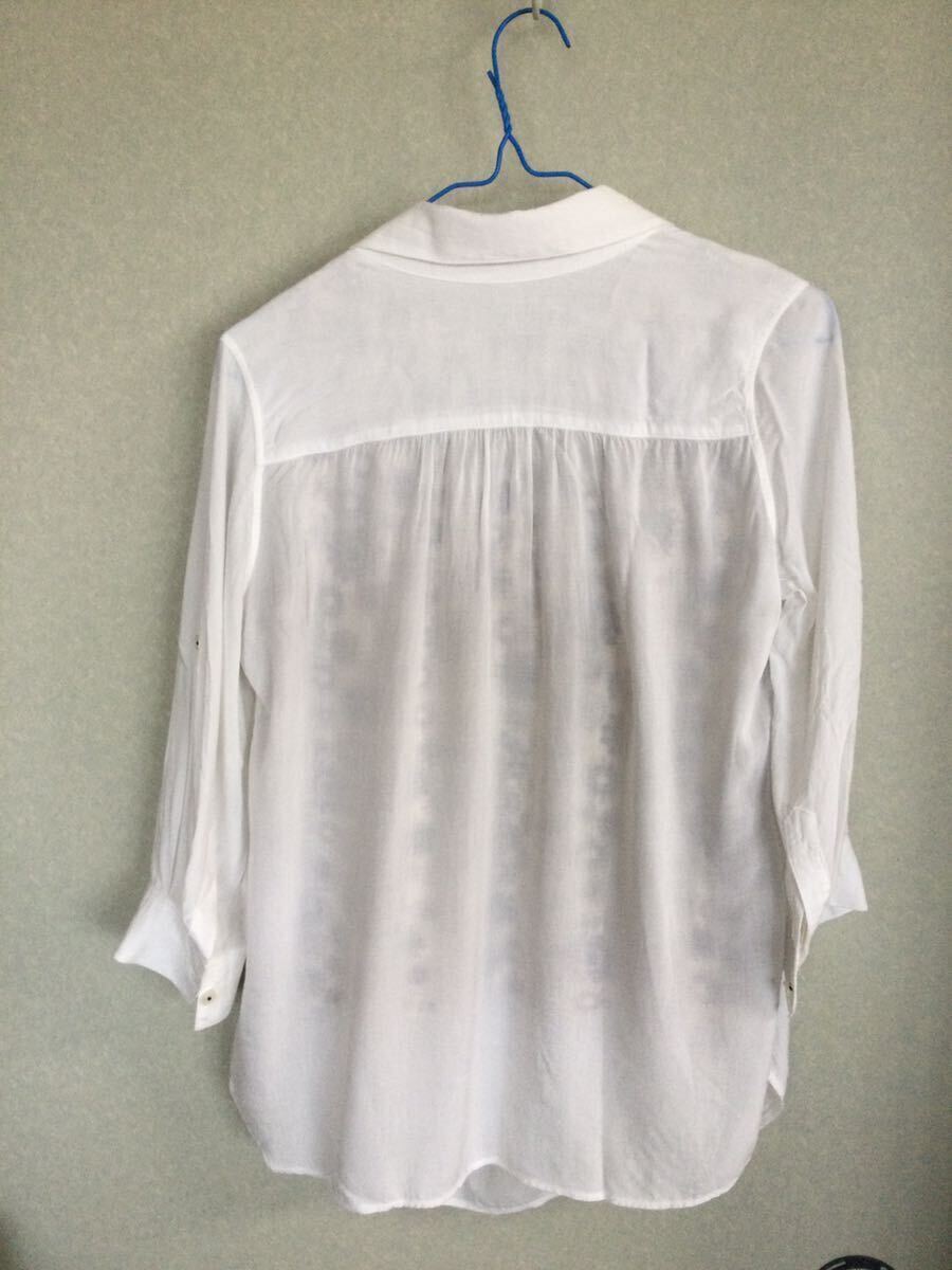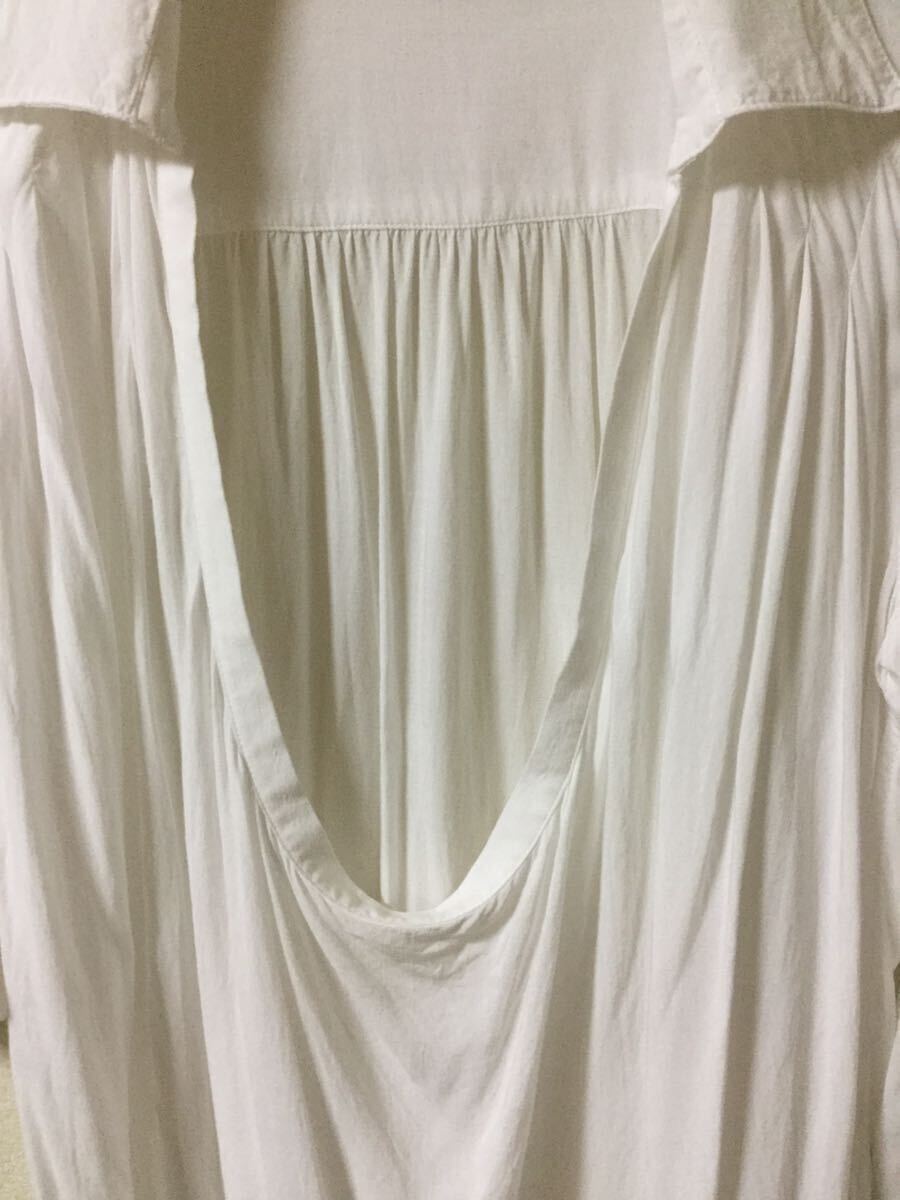 色 ホワイト 襟付き前U字 両肩に4本のタック 後背中ギャザー