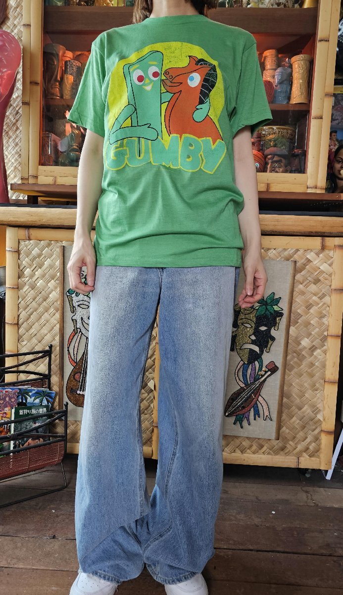 | GUMBY GUMBY AND POKEY MENS T-SHIRT 1953年に3分余りのショートアニメ『Gumbasia』をベースとしてアート・クローキーによって創られた 緑色の粘土のヒューマノイド「GUMBY」のTシャツ「GUMBY AND POKEY MENS T-SHIRT」です。 1956年8月にNBCの子供向け番組『Howdy Doody』でエピソード『Robot Rumpus』が放送されテレビデビュー, 1957年からガンビーとしての単独番組が放送され 35年間にわたって233のエピソードが放送され人気長寿番組/アメリカンキャラクターの代名詞のひとつとなっています。 ガンビー・カラーともいえるグリーン系のボディに、代表的なサイドキックがポーキーとの2ショット! ポップでアメリカ~ンな雰囲気が◎!! Color:HEATHER GREEN 新品・正規品 Sサイズ 細身の170cm前後の方によいかと思われます。肩幅41cm,身幅44cm、着丈69cm モデル 161cm , Sサイズ着用 メール便送料¥250(代引き不可・紛失補償なし) THRASHER、Sailor Jerry等~アメキャラ・企業ロゴTシャツ等ライセンスアイテム、ラットフィンク関連品、バンドTシャツ等取り扱っております。 ** 他にも色々出品中です。 CWLPpC IWTS | |||||||