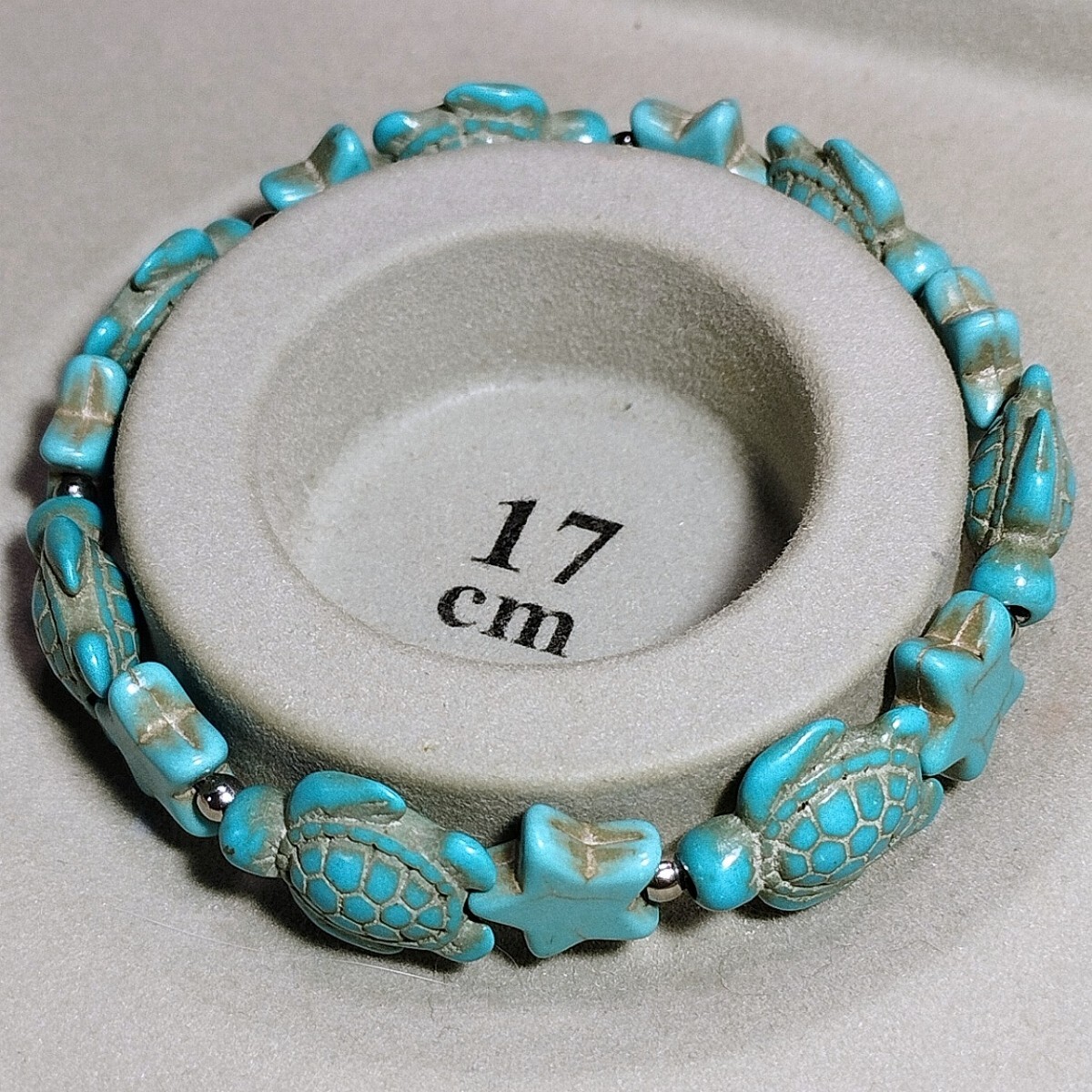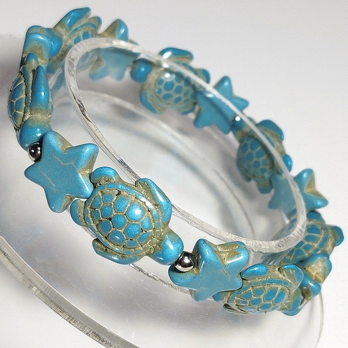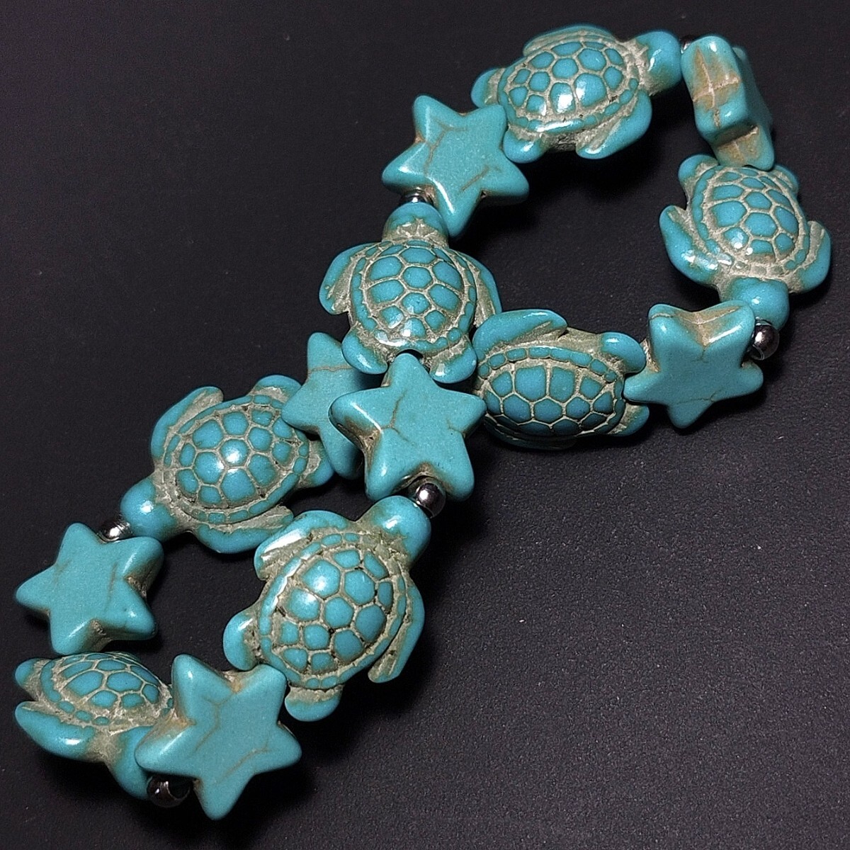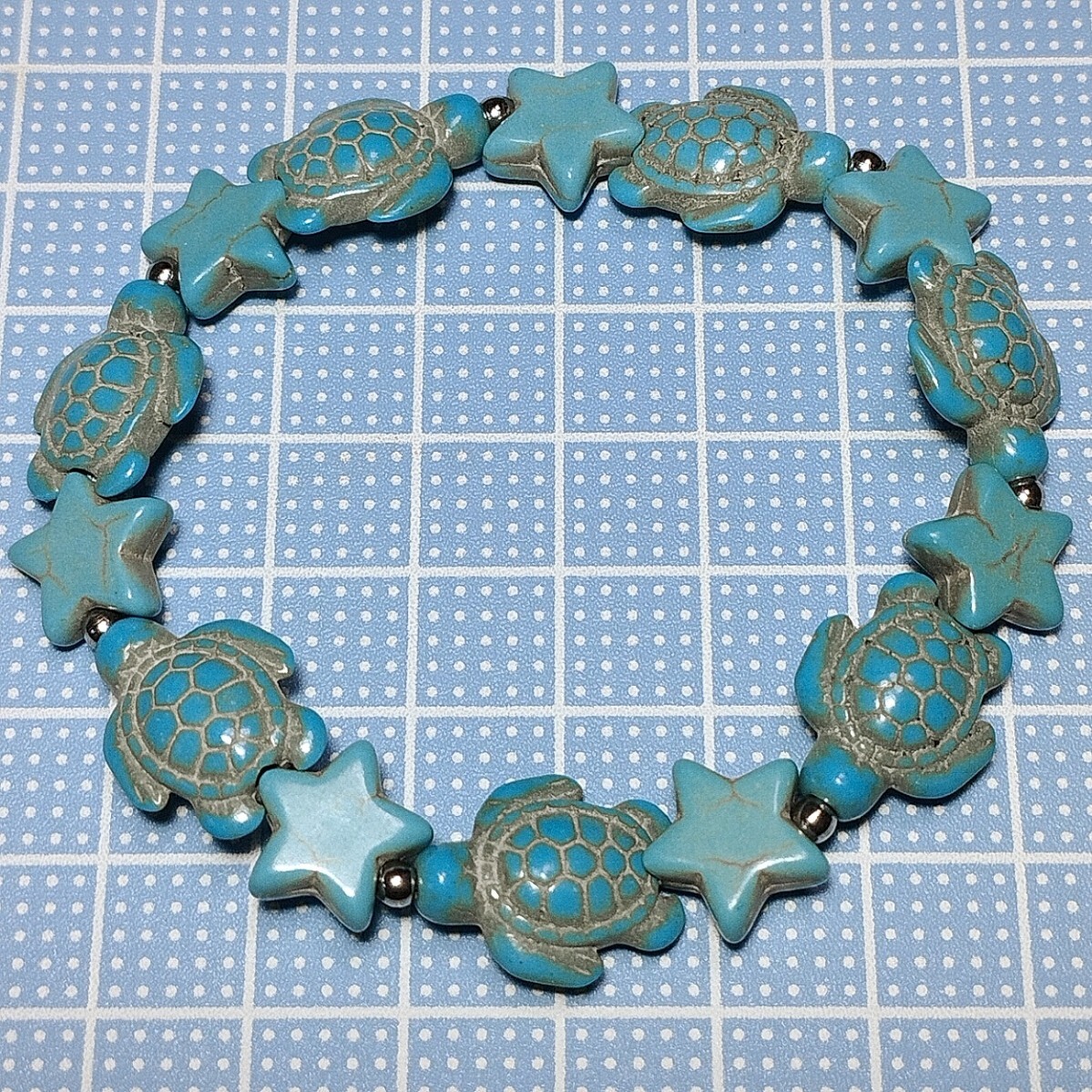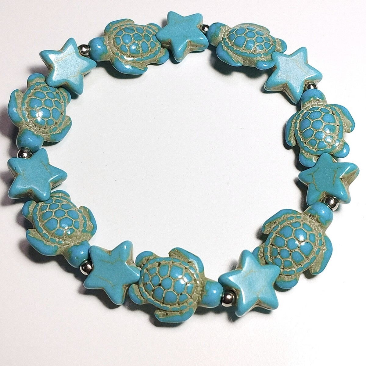 ハウライトターコイズのカメ(ホヌ)と星(スター)のブレスレットです。