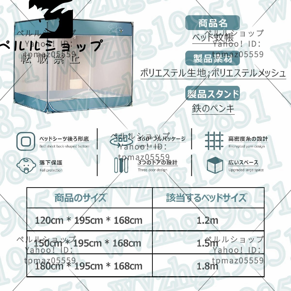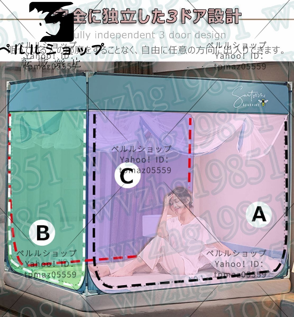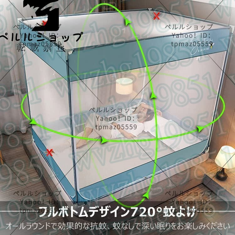 ボトムラッピングデザインマットレスを使用して蚊帳の底を押します。4つの角には、強化して固定するための三角形の領域があります。 携帯電話などの小さな雑貨を収納するための小さな収納バッグのデザインが付属しています。 | 内蔵ゴムバンド蚊帳とマットレスをしっかりと固定できるので、蚊帳が揺れません。 | 蚊帳メッシュを修正日中は、蚊帳を締めてアクセスと換気を容易にします。 | 内側と外側の双方向ジッパー双方向ジッパー、3つのドアで蚊帳を簡単に開閉できます。 |