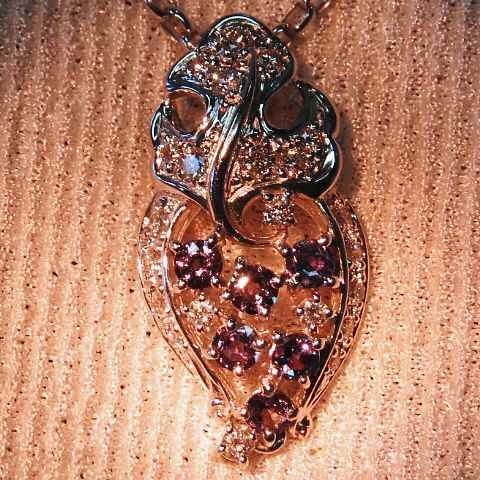 美しいカラーチェンジが楽しめるアレキサンドライト入りデザイントップネックレスです。