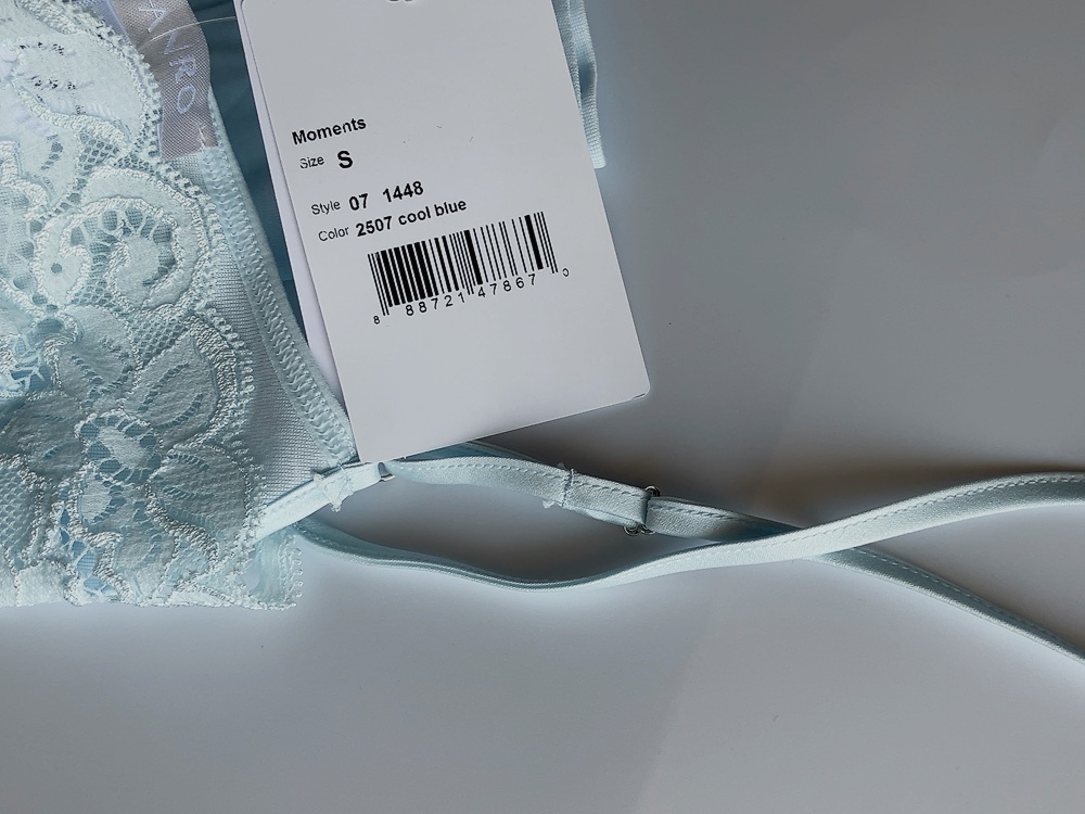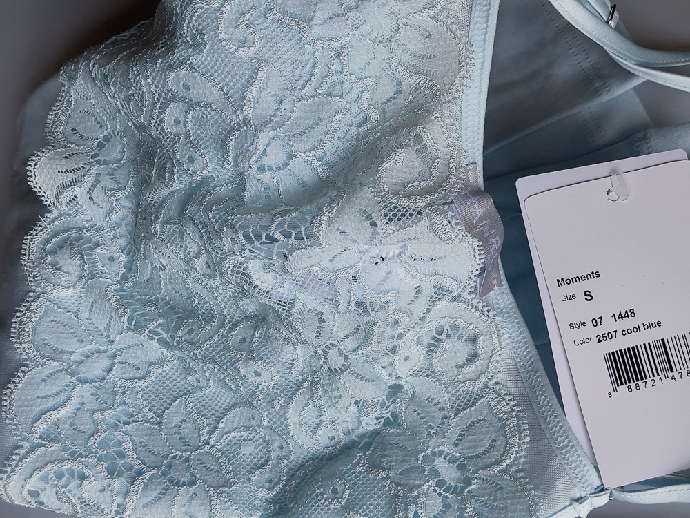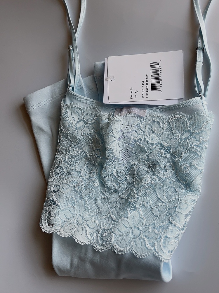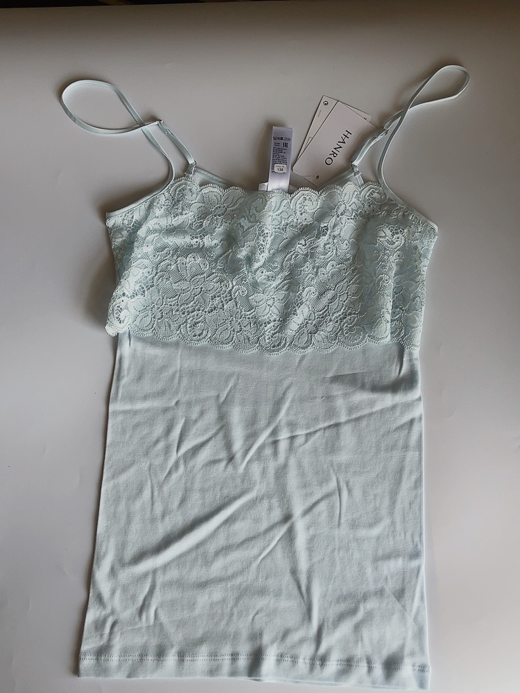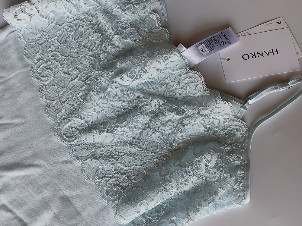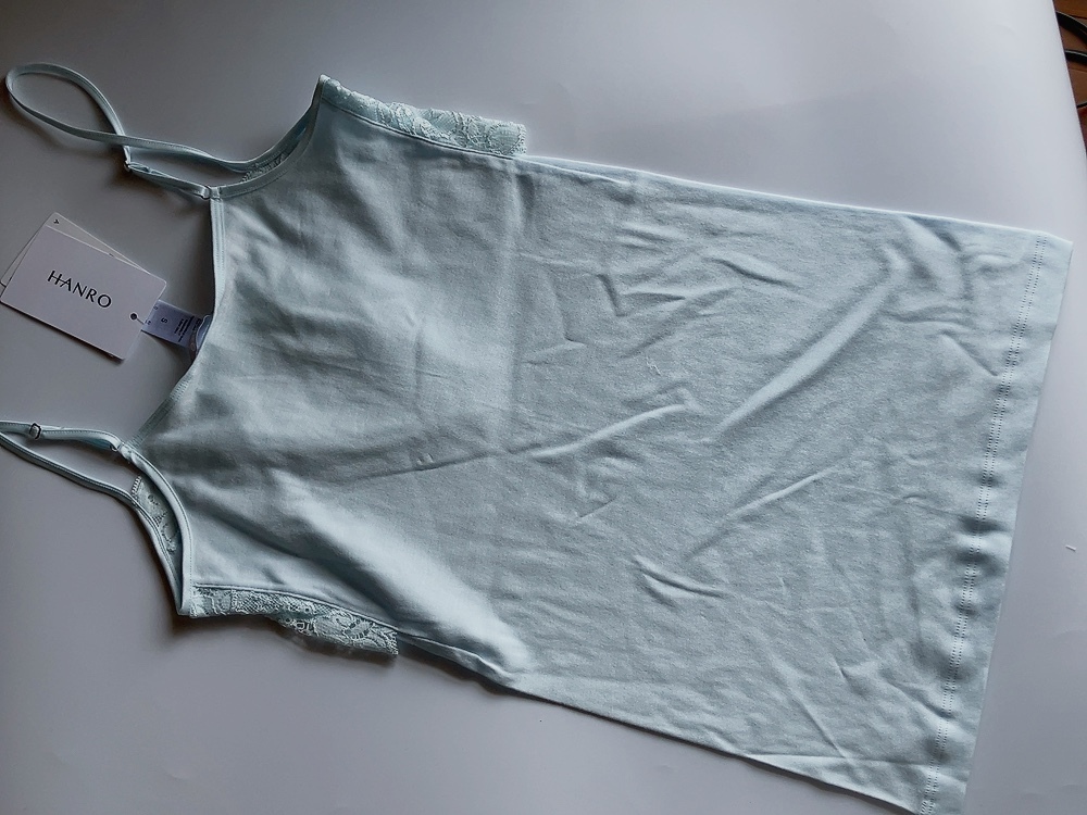 M(S)☆HANRO ハンロ 海外高級 胸元レース使用 キャミソール スイス コットン 水色